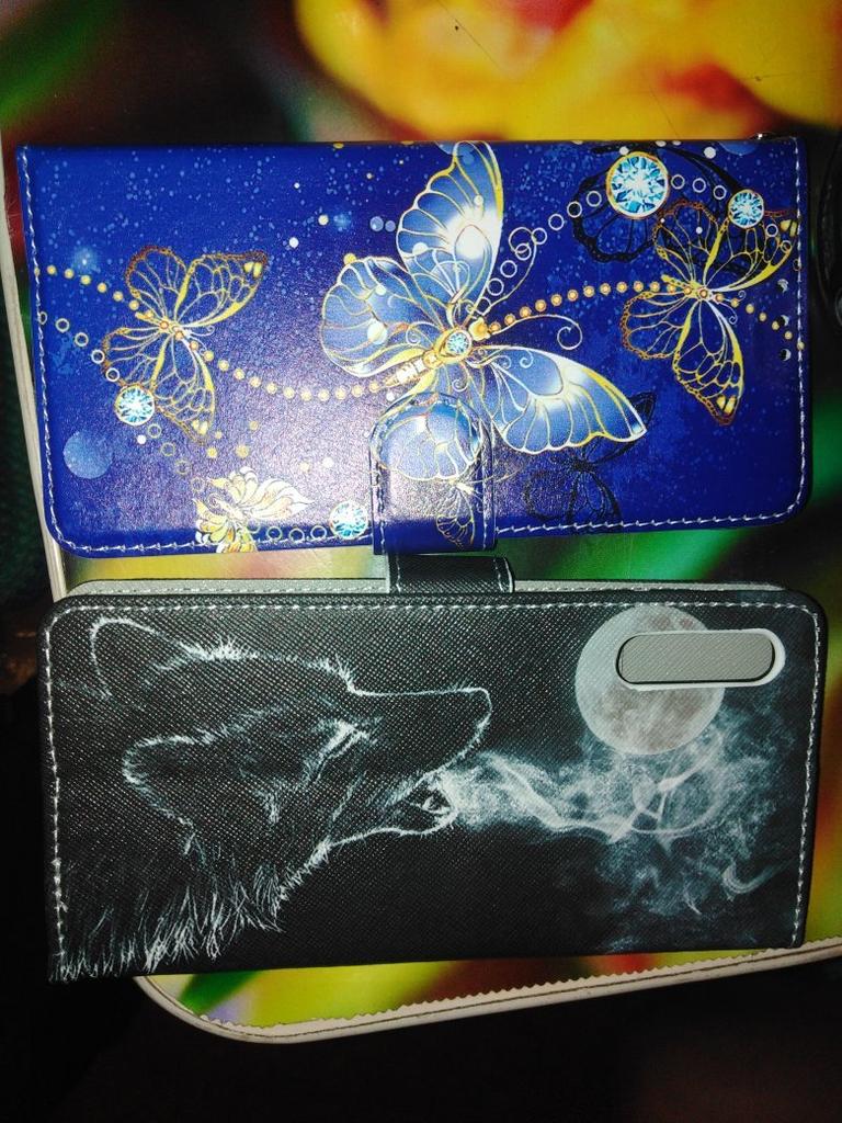 Заказывала 2 чехла на разные телефоны. С бабочками в другом магазине, но с волком тут. Очень качественный. Морозы пережил и не лопнул. Хороший кожзам. Телефон сидит крепко.