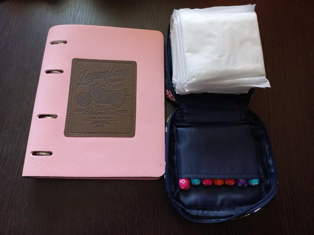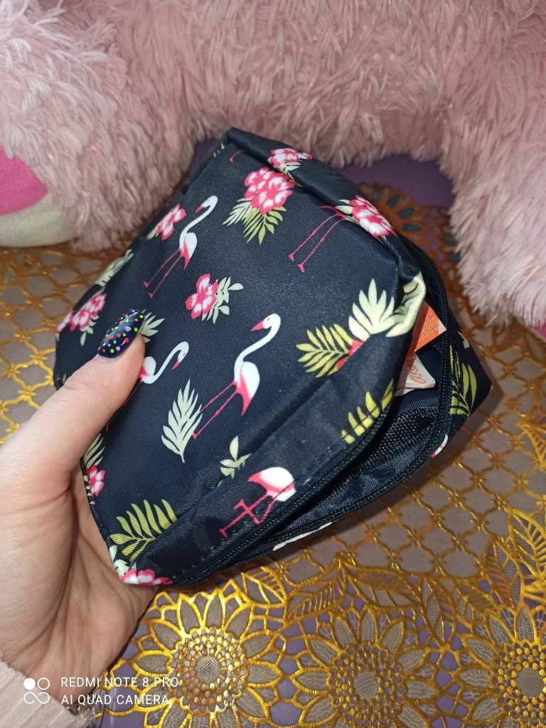 Пришла посылка, доставляли около месяца. Косметичка хорошая, прошита ровно. Единственное, мне казалось она чуть меньше, так, чисто положить в сумочку пару прокладок на всякий случай. По факту же в неё спокойно влезает половина пачки прокладок и половина упаковки тампонов. Носить с собой такой арсенал ежедневно не очень удобно, а вот взять в отпуск или поездку самое то.