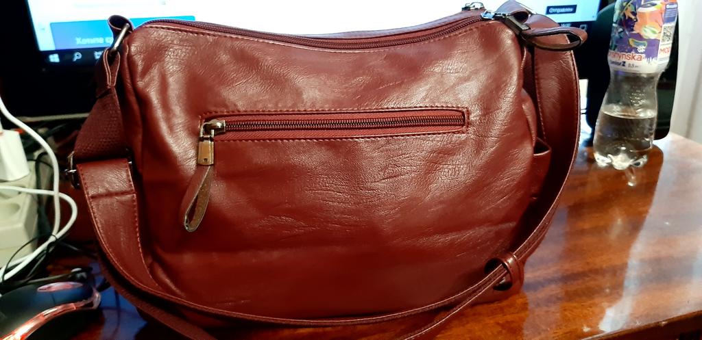 На вид симпатичная сумка. Размеры немного меньше заявленных, но все равно вместительная. Пошита аккуратно, немного с запахом. Кожа, не кожа, не поняла, сумка немного помялась в дороге, но заломов на коже нет, так что будем надеяться на лучшее. Носка покажет. Получила в Киеве через 2 недели, был трек-номер. Пользуюсь сумкой неделю, удобная, вместительная, запах выветрился, состояние идеальное, красивый насыщенный цвет Red Wine (красное вино или бордовый по-нашенски). Помещается в нее планшет, смартфон, помада с пудренницей, поллитровая бутылка воды, три сложенных больших сумки для покупок и много других нужных мелочей. Я довольна! Спасибо! Рекомендую продавца и товар!