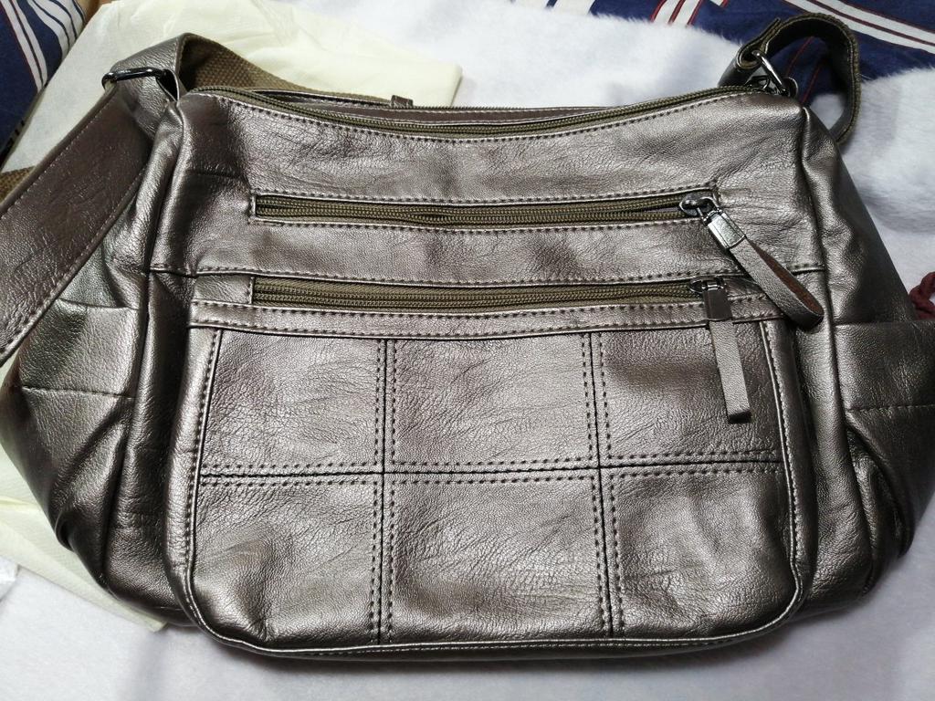 Заказ сделан 12 декабря, получила 25 января, как раз ко дню ангела - Татьянин день. Очень долгоооооооо.... Сумочка понравилась - сдержанно бронзового цвета, запаха нет, все строчки ровные, молнии работают отлично. Два основных отделения с карманами внутри и дополнительно ещё 5 карманов с внешней стороны - люблю, что б карманов много было, все на своём месте. Понравилось, что ремешок с внутренней стороны продублирован тканевой лентой, гарантия, что не растянется и не порвётся. Только один момент немного озадачил : место крепления для ручки, на мой взгляд, слабовато, только вшито в боковой шов, не продублирован ни дополнительным швом, ни металлическим креплением. А в остальном очень довольна. Папка А4 не войдёт к сожалению, но не критично, сумка очень вместительная при таких небольших размерах. Давно такую искала. Спасибо Joom и поставщику!! Рекомендую.