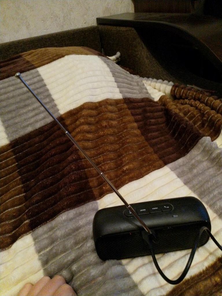 Антенка маленькая, но свою работу делает... Однако, если у чехла толстые стенки, как у противоударного чехла, то штекер может заходить не полностью и тогда радио включаться не будет...