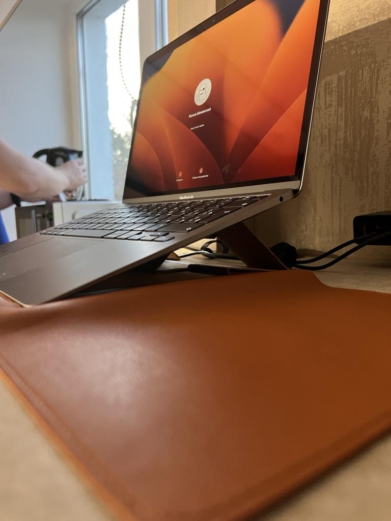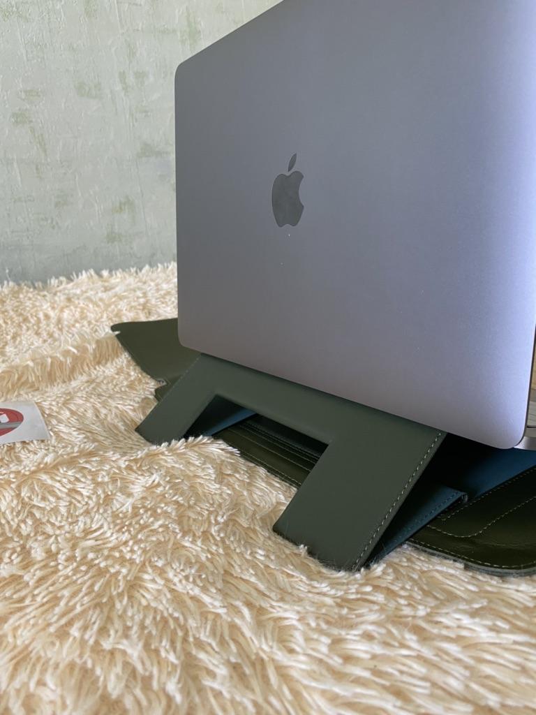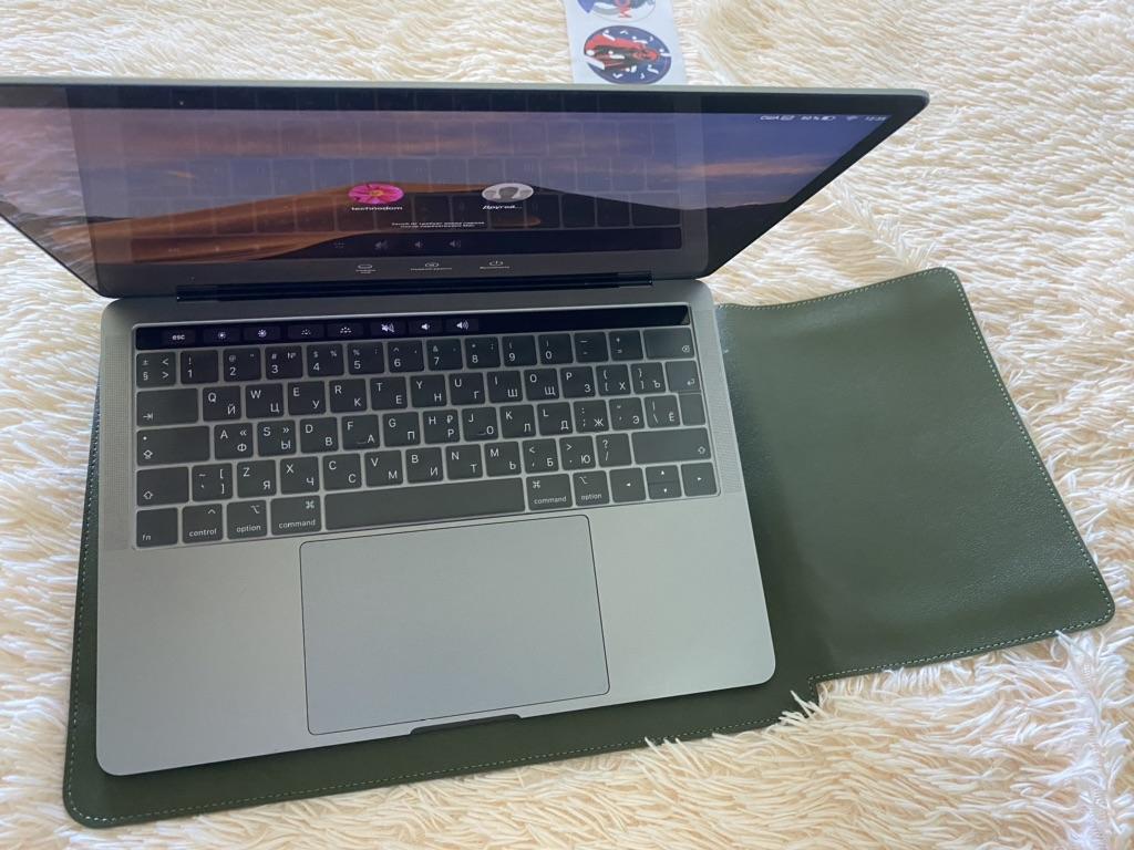 У меня MacBook Pro (13-inch, 2019, Two Thunderbolt 3 ports) Заказ долго шел, качество и модель точно такое же как и в описании, советую, материал отличный, подъем для ноута тоже нормально придерживает ✅ • но был бы магнитик на крышке, и ремешок что б держать было бы еще лучше 13 дюймовый ноут смело вместиться