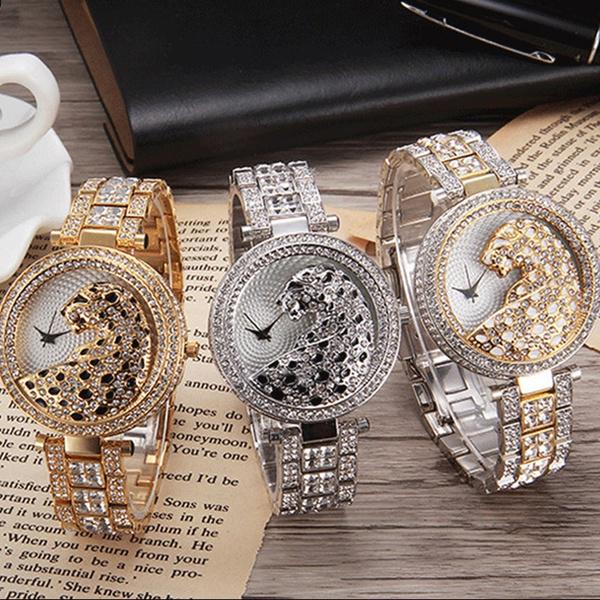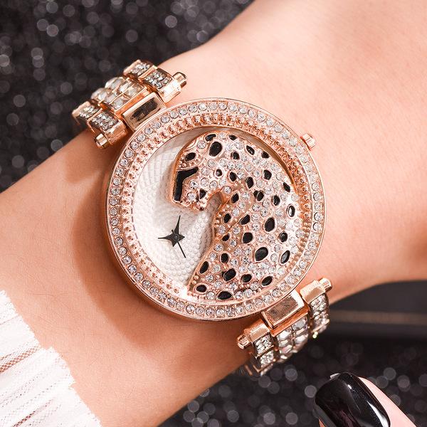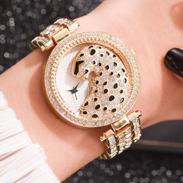 Женские кварцевые часы "Леопард", инкрустированные кристаллами