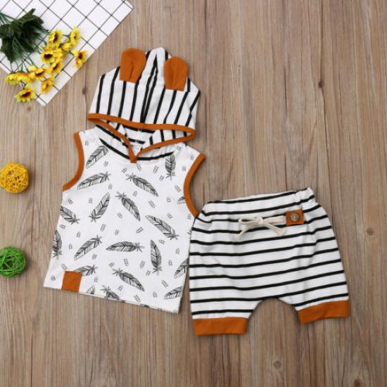 2 шт. жилет для новорожденных мальчиков и девочек, рубашка на бретелях с капюшоном, топы и шорты, комплект одежды