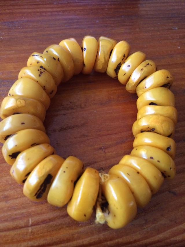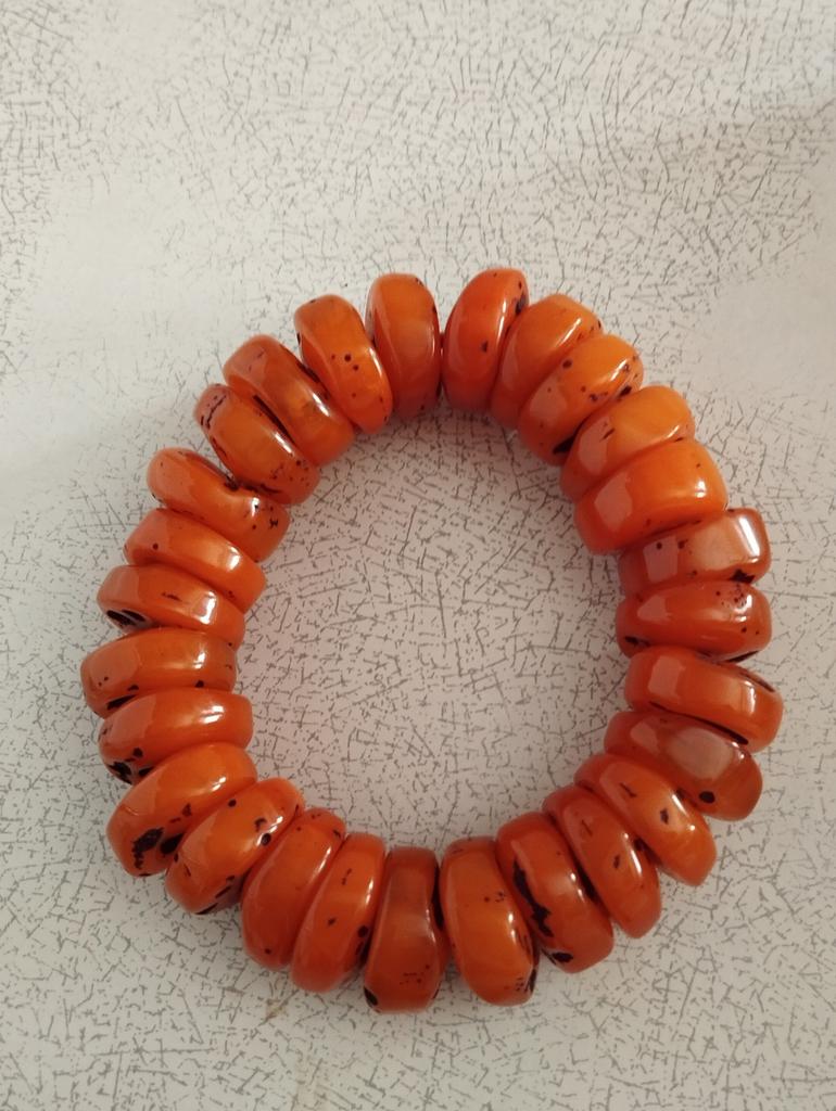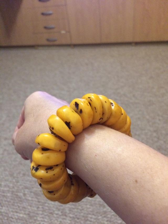 5+!Очень ждала посылку-и не разочарована!Браслет полностью оправдал ожидания!Конечно,не янтарь(помимо всего прочего,янтарь не пахнет ароматическими палочками😄),но очень правдоподобная стилизация.Желтый цвет-не глупенький,однородно-пластмассовый,а с эдакими переливами, «игрой»,как у настоящего янтаря.Ооочень подходит к любимому темно-синему платью бохо.Стильный!На двойной резинке.