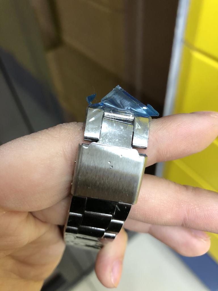Часы пришли уже поврежденные. На фото видно, что циферблат поцарапан изнутри, под стеклом. Плюс ко всему сама застежка в каких-то вмятинах, которые были задолго до упаковки, поскольку вмятины были под защитной синей пленкой, которая в свою очередь была целой. Не довольна качеством вообще.