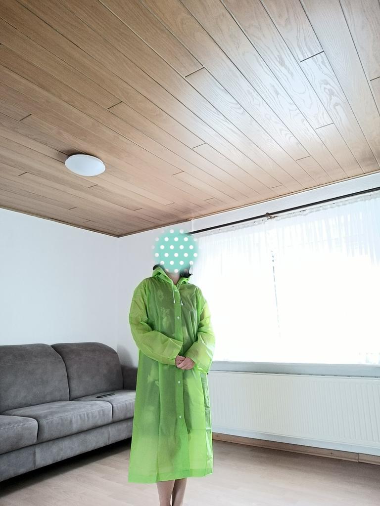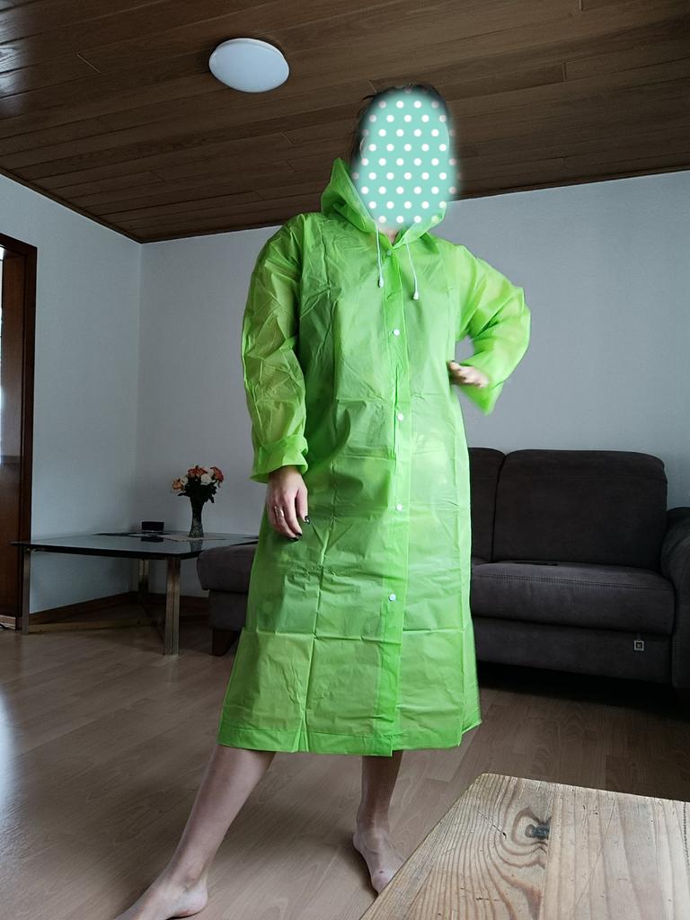 Доставка в Германию довольно быстрая (приблизительно 3 недели). Плащ заказывала жёлтый,но отправили салатовый (цвет красивый). Немного великоват,но это не плохо,так как одевать на куртку будет отлично!Плащёвка довольно качественная, проклеянная, в капюшоне есть шнурок для завязывания при ветряной погоде.Кнопки всё на месте,без повреждений. Заказывала р-р L .Мой рост 164 см., длину плаща видно на фото, ориентируйтесь на свой рост,что бы понимать как он будет выглядеть на вас. Продавца рекомендую