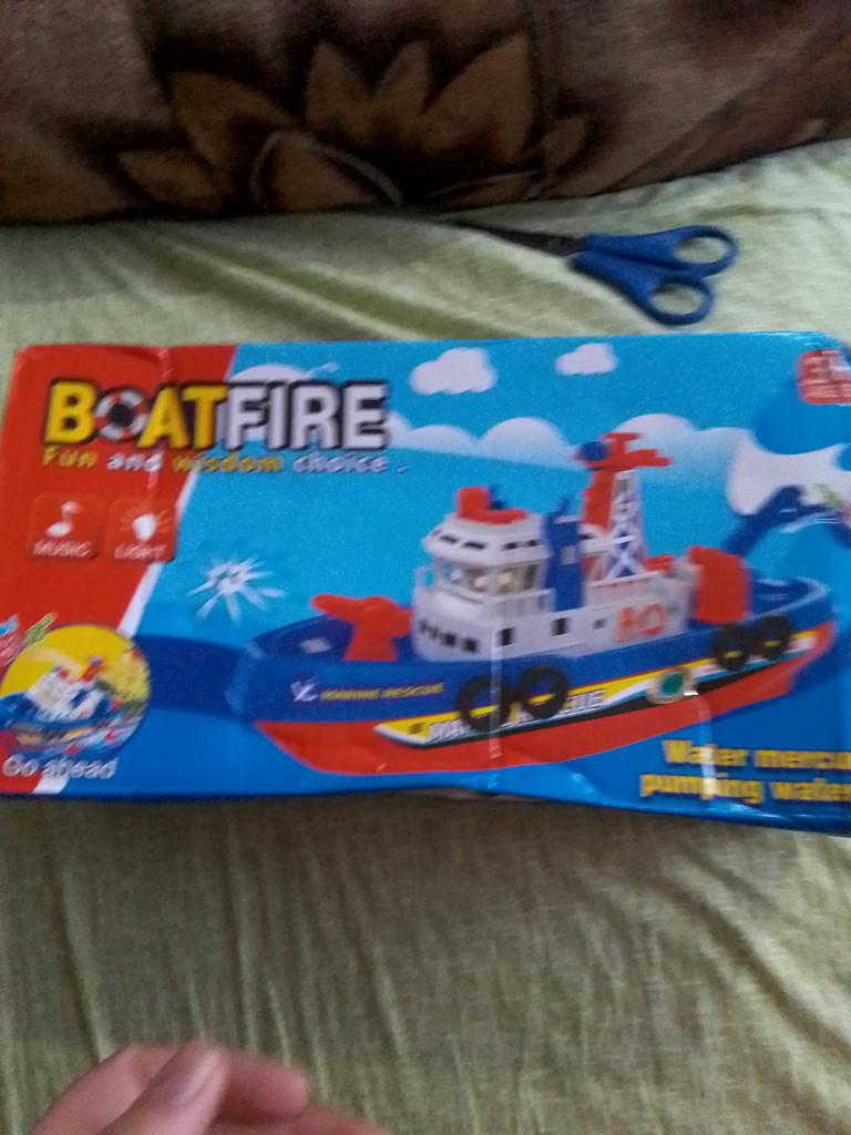 Коробка совсем развалилась, но катер из пластмассы не пострадал. Всё целое. Батареек нет в наличии, потом проверю остальные функции катера. Детали на нём не крутятся и не поворачиваются. Для ребёнка это не интересно. Так что смотрите сами, покупать ли такую вещь. Цена не маленькая 689руб.