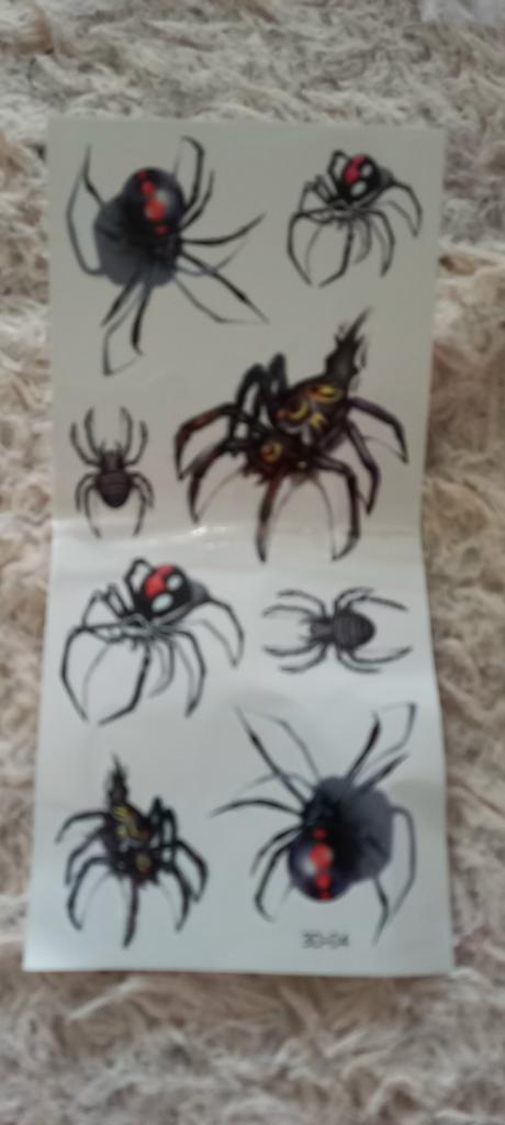 Татушки пришли сложенные пополам. Из-за этого самый большой паук как бы сморщится на складке. Но думаю, что будет всё в порядке и тату переведется нормально.