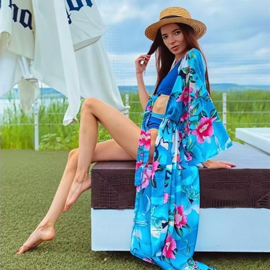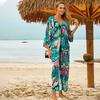 2022 зеленое хлопковое бикини с принтом в стиле бохо, туника с длинными рукавами, длинное платье, повседневное женское пляжное платье больших размеров, фартук Q734
