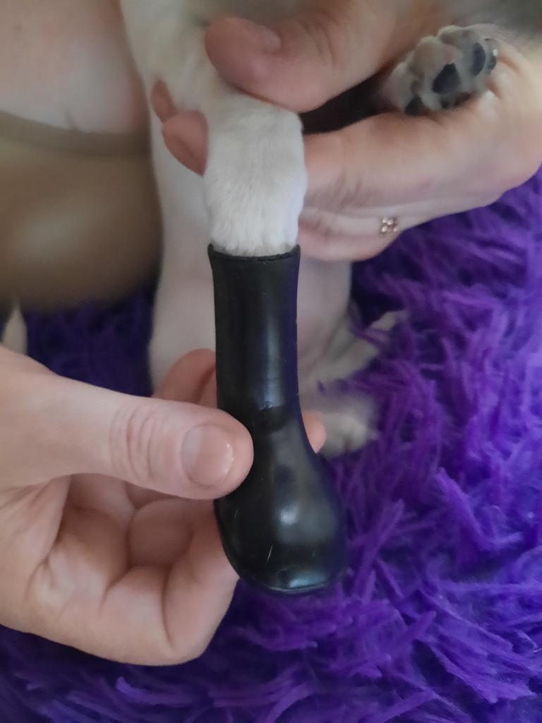 Сами сапожки очень хорошие. Но очень трудно на лапку одевать. После использования добавлю отзыв. Добавляю, так и не смогла одеть на йорка очень тугие. Бесполезные для маленьких собак. Добавляю еще. Обрезала немного сверху. Одевать стало легче. Лапки сухие. Не сползают. Для надежности еще фиксирую отрезанными резиночками.