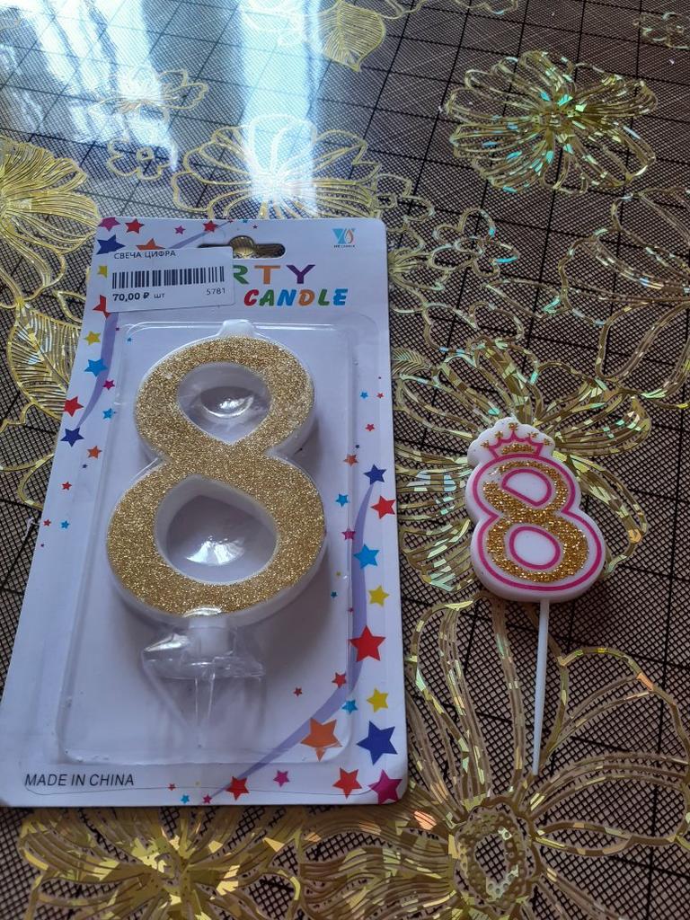 Доброго времени суток) Свечка в виде цифры. - Оперативная обработка заказа и его отправка. Заказ сделала 14.09, а 04.10 отправление поступило в почтовое отделение (Беларусь, г. Могилев). Путь посылки отслеживался только до страны назначения. - Упаковано в почтовый конверт, вложено в коробочку, которая при транспортировке слегка помялась, но свечка не повредилась. - Товар соответствует фото и описанию продавца. Представлена в двух вариантах расцветки: с розовой и голубой каймой. Рисунок чёткий, блестит красиво, на палочке держится прочно. Дефектов не обнаружила. Заказом осталась довольна. Рекомендую товар и продавца.