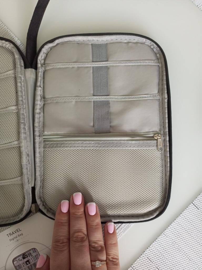Всем доброго времени суток! 🙂 Заказала 05.06.2022 принесли с укр.почти 07.07.2022г. Домой.🔥 Киев Теперь о заказе: Сумка-органайзер предназначена для хранения и переноски кабелей, проводов, зарядных устройств, адаптеров, наушников, флешек и других комплектующих техники и электроники. Провода не путаются Органайзер состоит из двух отсеков, застегивается на молнию. На одной части расположены: 5 удобных кармашков на эластичных резинках. Шнуры, кабели и провода не путаются и находятся каждый на своем месте. 5 отделений-сеточек, которые прекрасно подойдут для хранения флешек, SD-карт и других мелочей. Передвижные перегородки Другая половина органайзера представляет собой большой карман с ячейками. Перегородки ячеек крепятся, поэтому вы можете передвигать и менять их положение так, как вам удобно. Органайзер изготовлен из нейлона, который защитит содержимое от попадания влаги. Сумка-органайзер станет для вас незаменимой вещью в повседневной жизни. Прекрасно подойдет программистам, системным администраторам, работникам IT. По достоинству оценят этот аксессуар путешественники и все, кто ведет активный образ жизни. Компактный и вместительный Органайзер компактен и удобен - в любой момент вы можете без труда воспользоваться нужным шнуром, а застежка-молния предотвратит выпадение содержимого из сумки. Благодаря вместительности все провода, кабели и комплектующие будут удобно и упорядоченно храниться в одном месте, будь то в доме, на отдыхе или в поездке. Если тебе был полезен мой отзыв, ставь ❤❤❤ Подпишись ✅✅✅