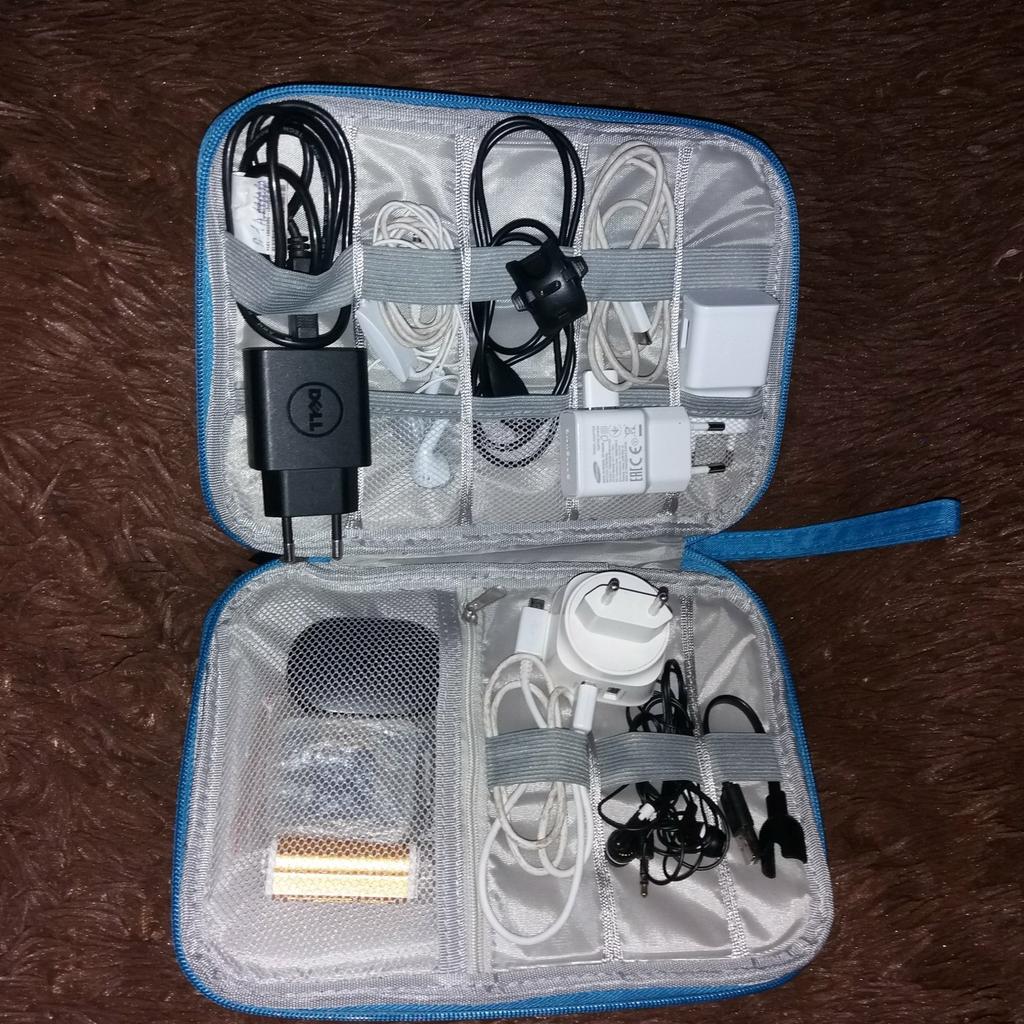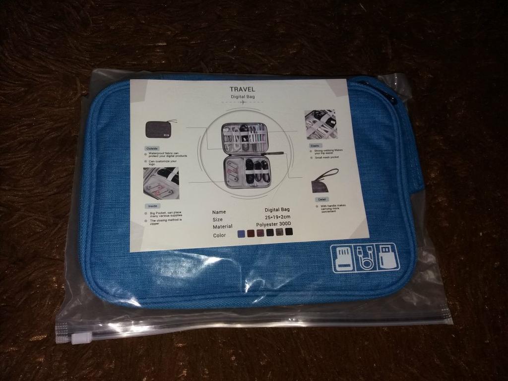 🌎Доставка в ЦФО 24.07.2020-30.08.2020. Забирала в отделении связи по извещению. Цена с купоном 334,80 рублей. 🎁 Органайзер для проводов, зарядных устройств, наушников и прочих технических вещиц, коих в нашем современном мире с каждым днем становится все больше 😊. У продавца представлен в нескольких цветах, я выбрала бирюзовый. Размеры: примерно 17 см на 24 см. Материал - ткань, плотная. Молния - пластмассовая, в рабочем состоянии. Внутри несколько отделов: один на молнии, несколько резинок с кармашками, просто резинки - держатели. Кармашки очень миниатюрные, вилка от зарядника не влезает, они для наушников, флешек и карт памяти больше подойдут. А вот резинки плотные, провода хорошо держат. Вообще, органайзер небольшой, компактный. И на удивление вместительный (например, пуэрбанк хоть в карман на молнии и не влез, но органайзер, нашпигованный проводами, легко застегнулся вместе с положенным сверху пауэрбанком). 🎀Резюме. Хоть и маленький, но нужный и полезный органайзер по бюджетной цене. Качество хорошее. Незаменимая вещь в поездках - все провода в одном месте, под рукой. Да и дома такая вещь пригодится, удобно, когда все, наконец-то, собрано в одном месте. Покупкой довольна. Спасибо продавцу и Джум 😘