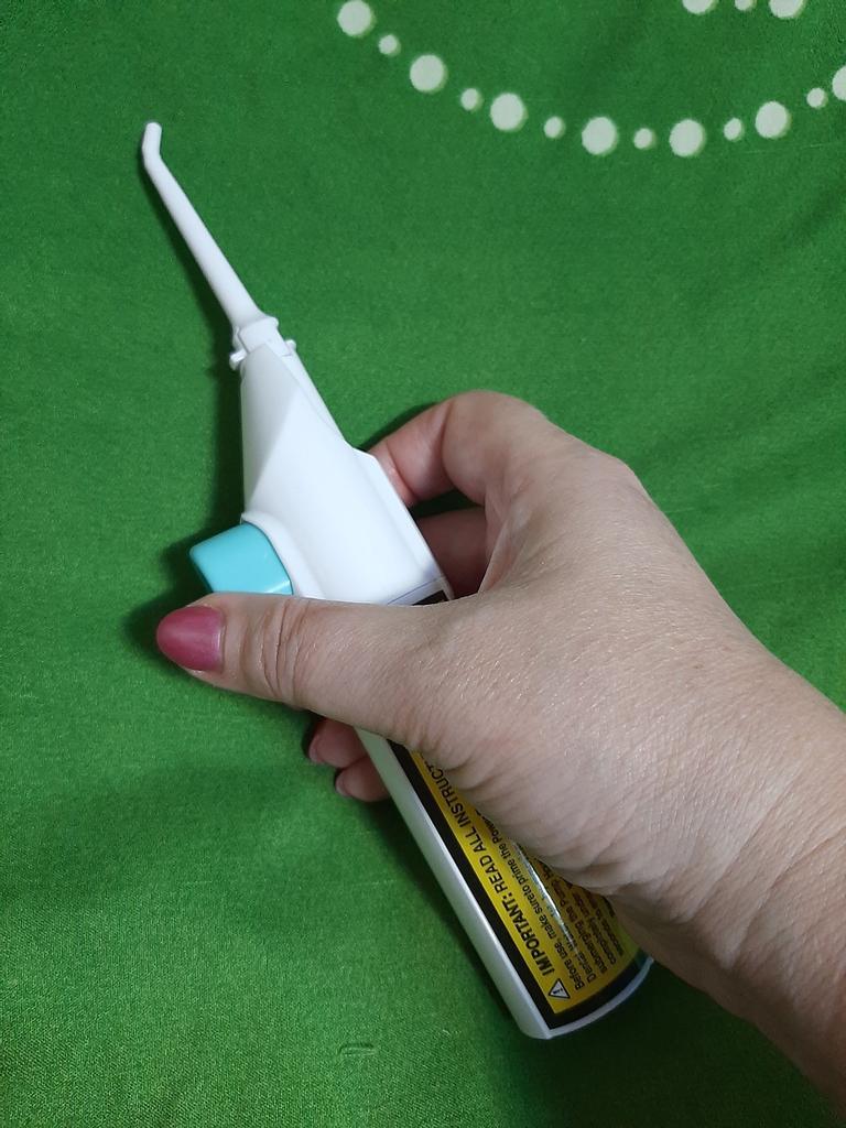 Хорошие ирригаторы. Компактные, лёгкие, удобные, простые в использовании. Не надо проходить курсы, чтобы ими пользоваться, открываешь, наливаешь в пластиковый стаканчик воду, закрываешь, пристёгиваешь трубочку для полоскания рта, зубов, дёсен и вперёд, полоскай рот на здоровье. Самое главное, не надо покупать батарейки, нажимаешь зелёную кнопку и вода льётся, в принципе хорошей большой длинной струёй. Ирригатор со своей работой справляется. Мыть его тоже легко, под проточной горячей водой. Если ирригатор засорился, струя воды не выходит из носика, просто скипятите воду, налейте в ирригатор, закройте на 15- 20 минут и всё будет как и прежде. Пользуйтесь на здоровье, содержите свои зубы в чистоте. Товар рекомендую. Спасибо продавцу и Joom. Дополняю: ирригатор хороший. Единственный минус: маленький стаканчик, приходится в него наливать воды для взрослых зубов ещё 3- 4 раза. Напор воды меня лично устраивает. Рекомендую.