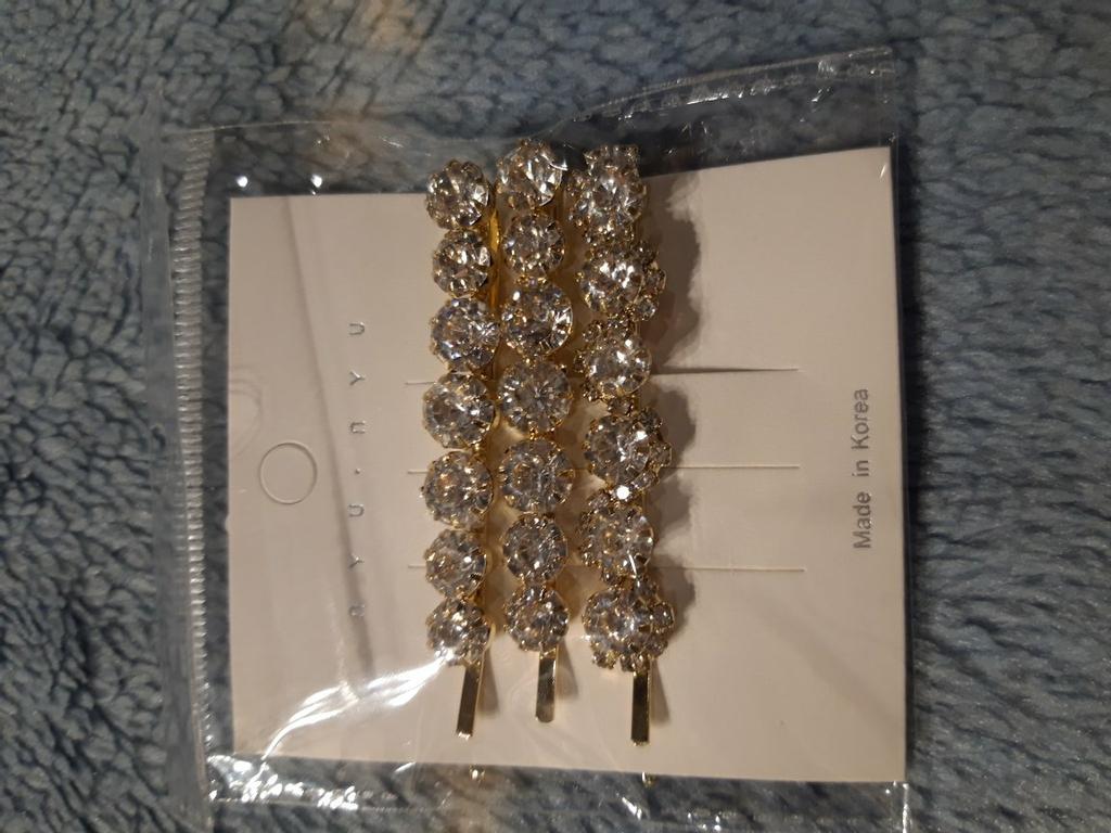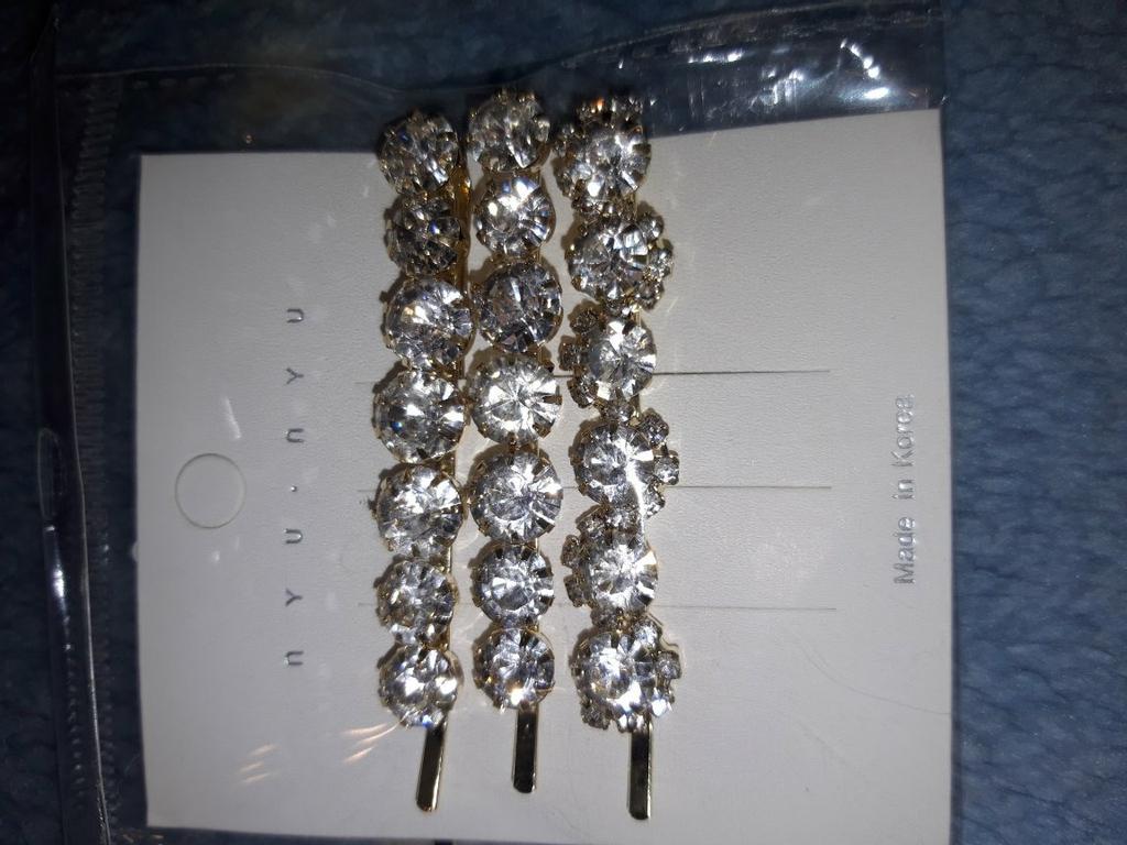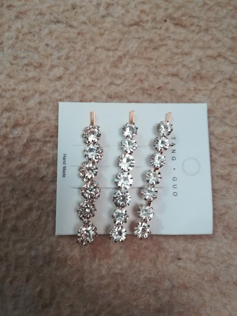 Очень красивые заколки, 3 штуки и все разные. Чтобы были каждого вида по 2,заказывала 2 упаковки. Доставили через месяц в Подмосковье.