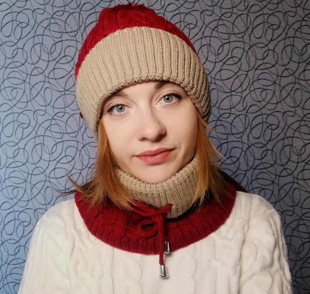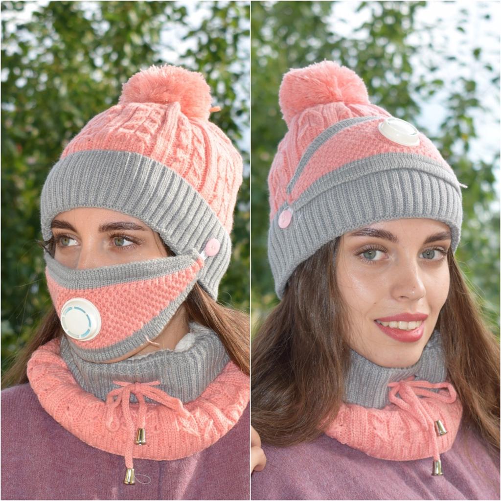 Красивый набор по очень приятной цене! КОМПЛЕКТ: ШАПКА + СНУД + ЗАЩИТНАЯ МАСКА на меховой подкладке! Качество отличное-фасон симпатичный. Кто любит экономить-статья для Вас))) Доставка до Екб составила около трёх недель, трек отслеживался на всех этапах пути. Упаковка- в два пакета. Мой заказ розового цвета. Шапка имеет абсолютно классический крой ), а вот снуд ("бесконечный" шарф), связанный по кругу, не имеет ни начала, ни конца, можно носить как шарф, имеет для более плотного прилегания шнурочек с колокольчиками на концах. Очень понравилась вязка разными стилями! Тут и лесенки и столбики и косы! Красота! Вязка ровная, машинная, идеальная! Есть пушистый помпон из розовых ниток. Маска связана в стиле шапки и снуда, фиксируется на пуговки и снимается если нужно. Маска изнутри отделана хлопковой тканью. Дышится удобно. Все предметы выполнены красивой машинной вязкой с рисунком из толстой акриловой нити. Внутри и шапка, и снуд имеют очень тёплую (выдержат до -15* С) , подкладку из белого флиса, пришитую почти по всей поверхности с внутренней стороны шапки и снуда. На мою голову 52 см села идеально и растянется еще. Комплект мне очень нравится и внешним видом и тем, что тепло и голове и горлу, изделия не продуваются, не промокают (от снега во всяком случае). Терпеть не могу дискомфорта, когда что то давят или "кусается". В этом комплекте все очень нежное и приятное! Набор идеально подойдет к повседневному стилю в одежде, особенно к пуховикам. Покупкой довольны! Данный комплект очень рекомендую! Качество выше всяких похвал.