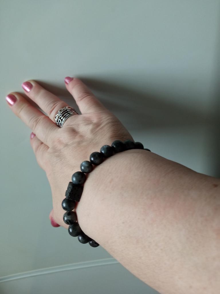 Браслет с бусинами. Второй браслет, буду носить вместе. Точнее уже ношу. Качество отличное, браслет чуть шире, чем чёрный, в середине такой же кусочек вулканической лавы. Камни и лава как настоящие. Доставка в Минск с 08.10. по 25.10.2021, довольно быстро в пандемию 🎃👰. Заказала ещё третий: только из черного камня без лавы. Скидка 5% по промокоду KOREA до 31 октября 2021 г.
