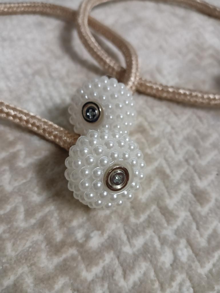 Ндааа - дешёвка по завышенной в 5 раз цене. Заказала 2 шт, пришли объединенными в фирменном пакете Джум. Нити клея на обоих держателях и затяжка 2-3 мм на одном держателе для штор. Верёвки приклеены изнутри шарика. Клей от души каплями висит. Бусины проворачиваются рядами, местами отходят друг от друга, с них слезает перламутровая краска. В магазине бы никогда ТАКОЕ не купила. Длина шнурка 40 см, диаметр шнурка 7-8 мм, диаметр шарика - 2.5 см. В других отзывах шнурки не такие тонкие или шарики имеют ещё один слой бусин, в общем, мои отличаются в худшую сторону. Доставка 25 дней, из них 13 дней по Китаю, отслеживание местами, пришло уведомление о прибытии.