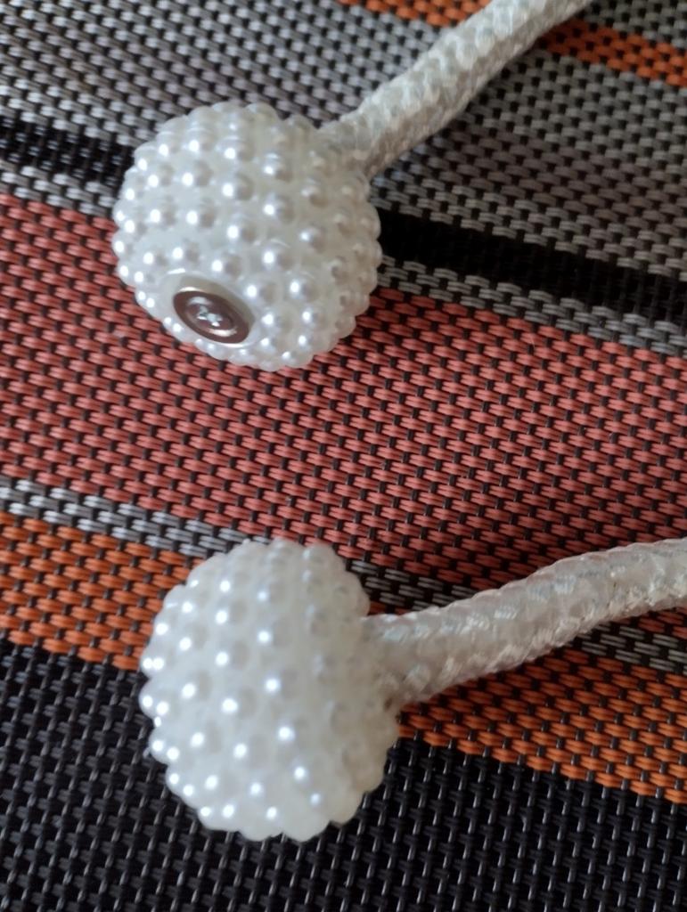 ♦️Магнит для штор♦️ Магнитики классные, только вот шнурочек не айс, производит впечатление использованной бельевой верёвки , из за торчащих ниток и неравномерности плетения. ♦️Длина шнурка без магнитов 40 см. ♦️Магниты сильные, в обрамлении искусственного жемчуга . ♦️Диаметр магнита 3 см. ♦️Высота магнита 2,3 см. ♦️Искусственные жемчужины впаяны в пластик и расположены в 7 рядов. ♦️У продавца в наличии 6 цветов, но учтите, что это цвет шнурка, магниты во всех случаях с белыми жемчужинами. Брала для вуали на кухню, держит отлично, не сползает🤗 💖В целом смотрится не плохо, если не приглядываться к шнурку. 💖А покупать или нет решать Вам. Доставка в Пермь месяц в сборной посылке живым авиатреком через Внуково. ❤️Тепла и уюта Вашему дому🤗
