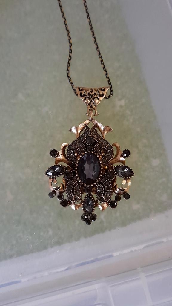 Пришла посылка за месяц и неделю до Спб. Кулон красивый, интересный. Сделан качественно. Цепочку конечно хотелось бы подлиннее( всесте с кулоном 34 см) Цепочка хоть и не толстая,но интересная- переливается золотым и черным цветом. В комплекте с серьгами и браслетом- хороший вариант, да и отдельно тоже!