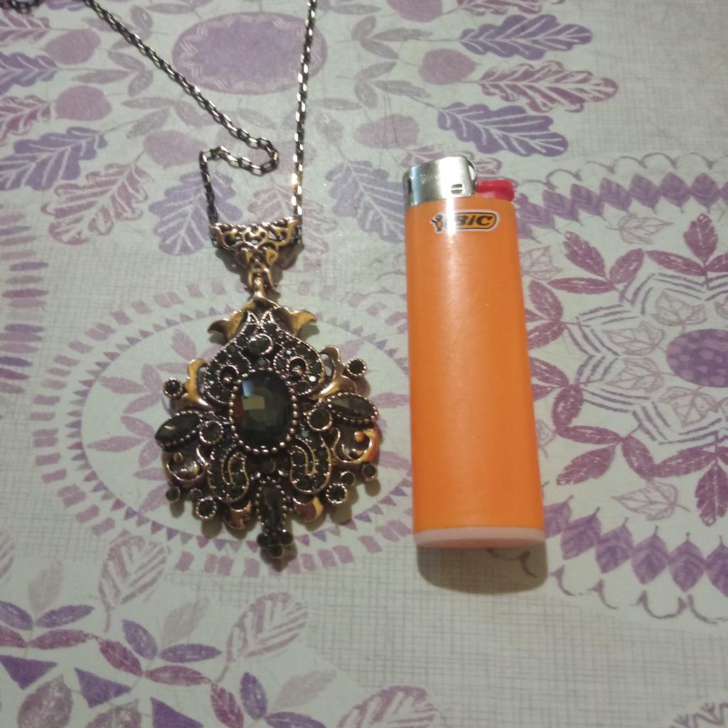Кулон классный, без брака, хотелось бы побольше размер, для сравнения поставила зажигалку, а вот цепочка короткая и не солидная совсем... Ранее заказывала серьги из того же репертуара для комплекта, но, наверное, все вместе носить не буду, был бы кулон крупнее, было бы гораздо эффектнее и подходило бы на 100 %. В целом довольна спасибо Джум и продавцу)