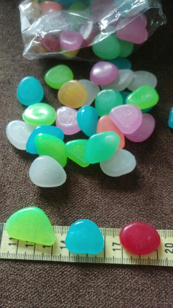 Прикольные камушки. Светятся не очень ярко, но это даже лучше для интерьера. Загадочно как то подсвечивают. Размер камушков как в описании. Пришли достаточно быстро, даже не ожидал. Спасибо производителю и джуму.