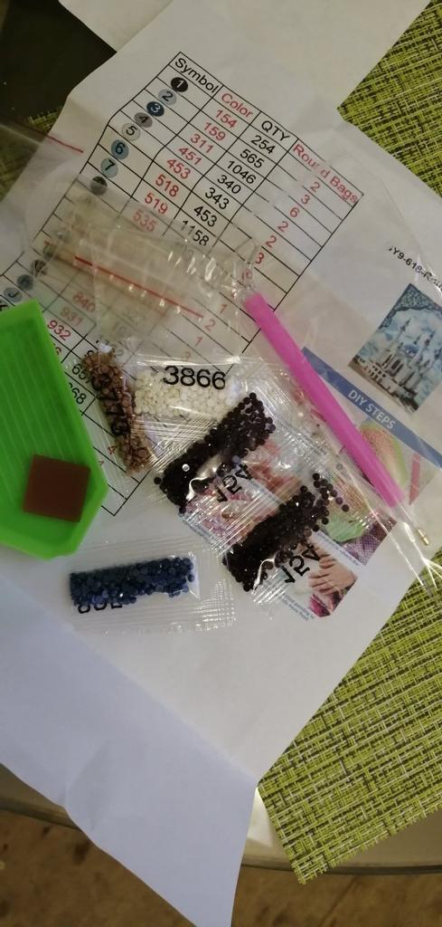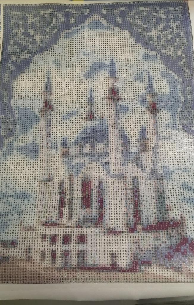 Не доложили три цвета, пришлось фантазировать и брать стразы из других, оставшихся после выкладки,картин.