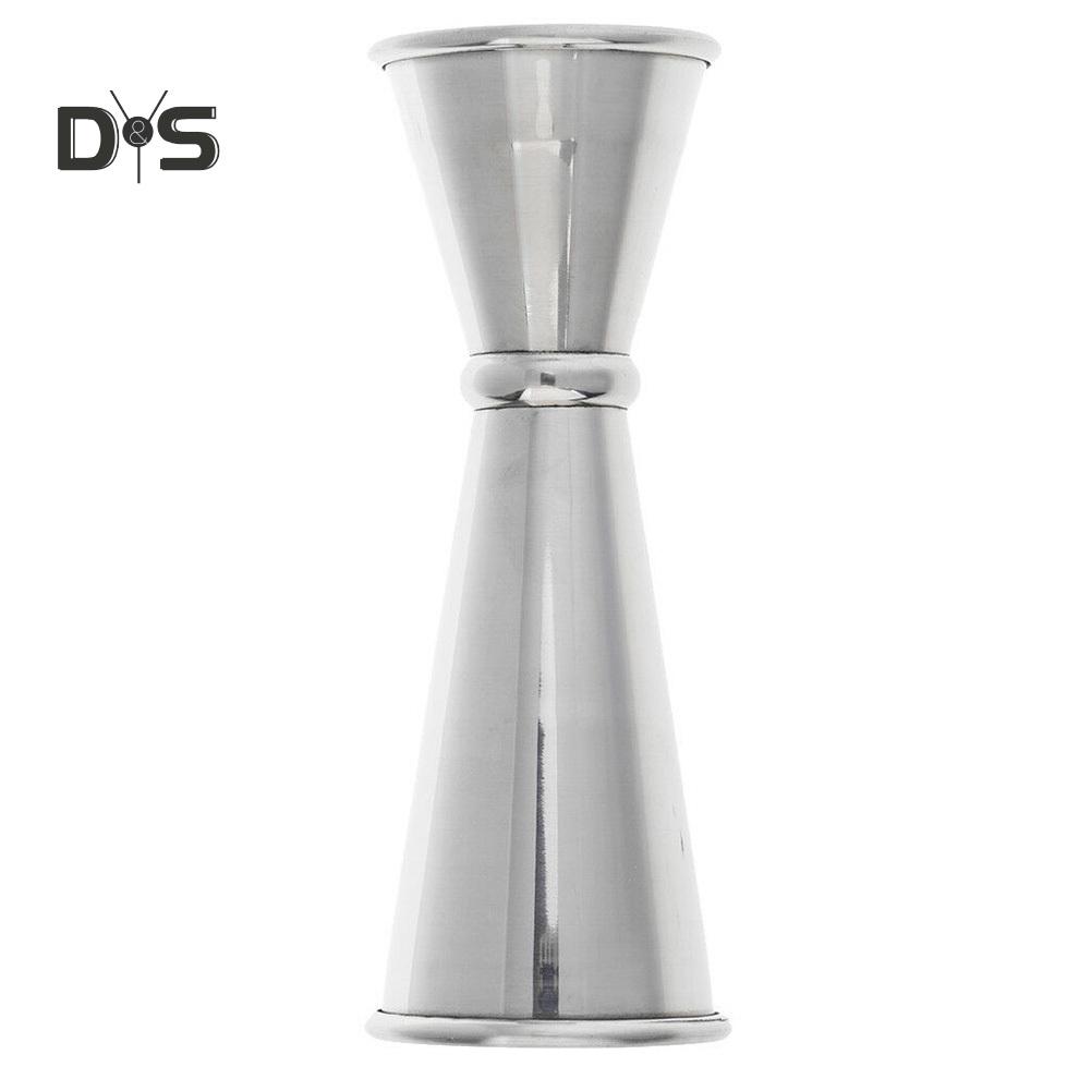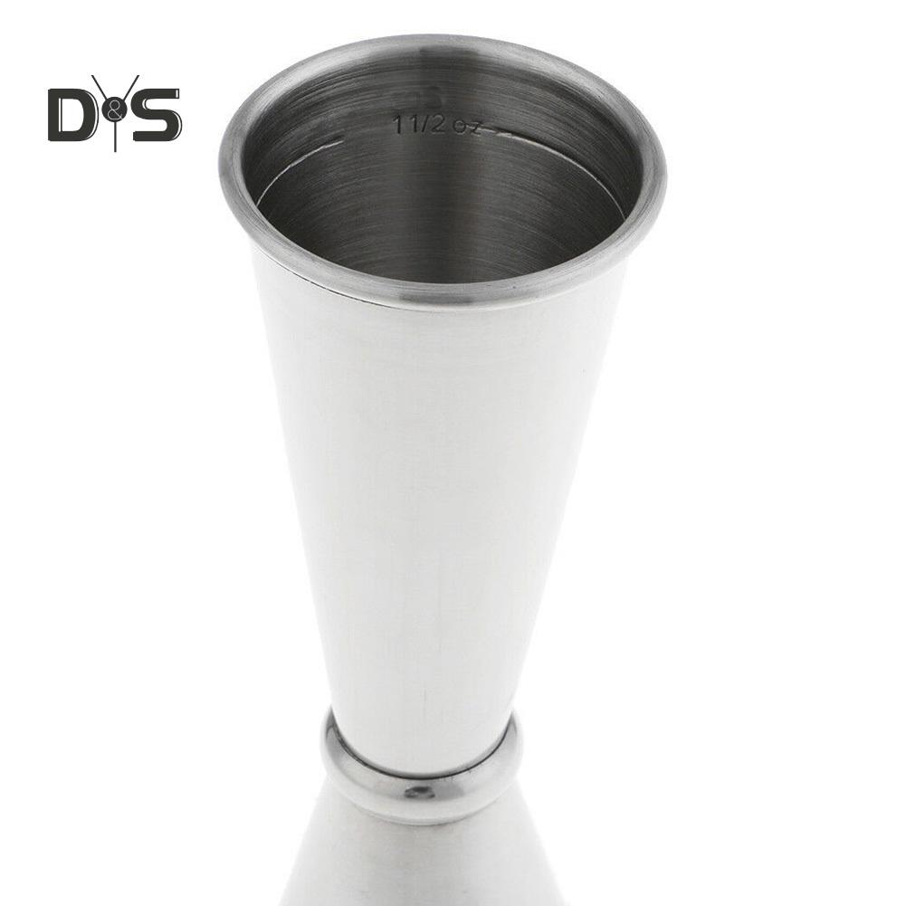 Двойной дробь утолщения мерной чашки коктейль джиггер, инструменты для измерения заливки, разделитель ликера, кухонные / барные принадлежности. Изготовлен из нержавеющей стали, поверхность полирована, красивая и долговечная, антикислотная коррозия, легко чистится и не искажается. Емкость чашки составляла 30 мл и 60 мл. Подходит для измерения жидкости в барах, отелях, ресторанах, чайных магазинах, кофе, лаборатории и т. Д..