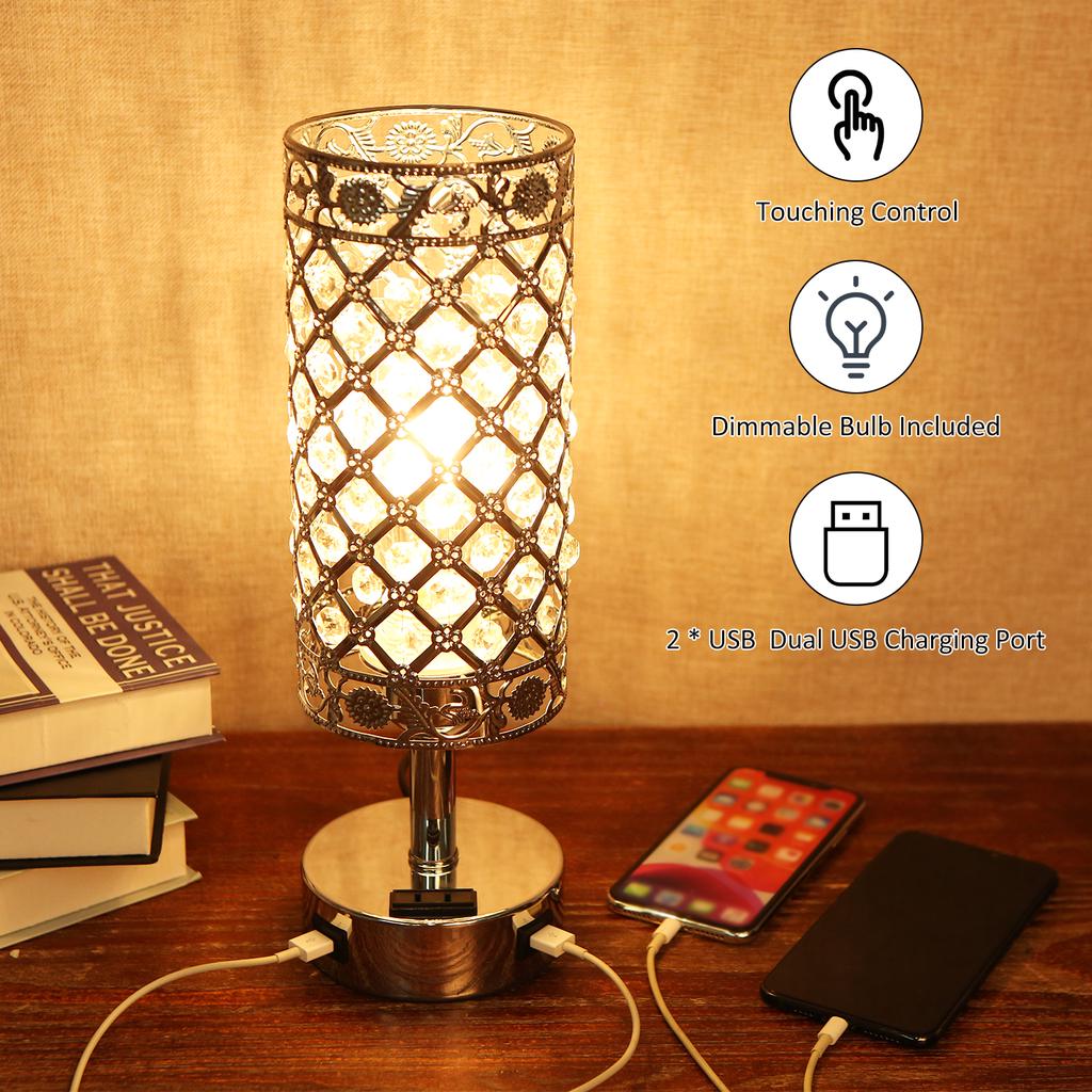 Прикроватная настольная лампа Tomshine Touching Control с двойным USB-портом для зарядки и трехсторонней розеткой переменного тока с регулируемой яркостью