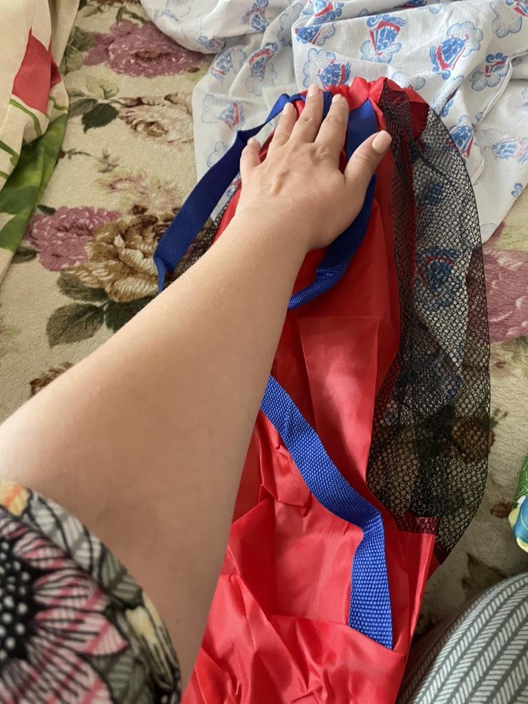 Очень довольна, все игрушки для пляжа с багажника влезли, ещё и место осталось. Ещё есть лямки, как у рюкзака, кинула на плечи и руки свободны. А то тащила кучу пакетов, ребёнка, обувь.