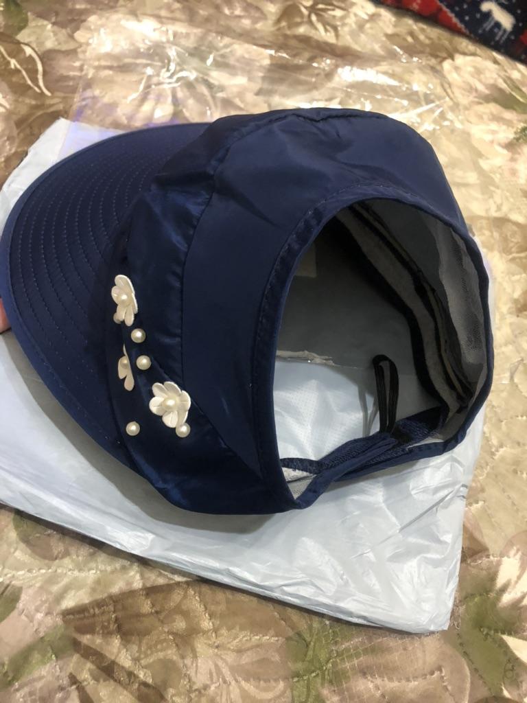 Большой диапазон в размере - не бойтесь заказывать, если у вас большой размер головы. Застежка на липучке. Не могла понять, зачем на одной из липучек петля - позже увидела шнурок с карабинчиками (чтобы не потерять шляпу при сильном ветре). Спасибо, все продумано. Украшение сбоку выполнено цветочками из прорезиненного материала и жемчужных бусин. Верхняя часть выполнена из Болоньи, подкладка сетка-капрон. Закрывает только макушку, но глубоко, можно спустить в зад. Складывается в плоский предмет. Очень удобно в дороге. Скорее всего, закажу еще в другом цвете.