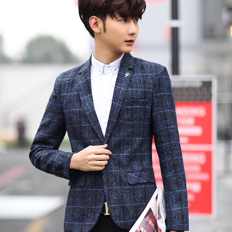 Осенний мужской повседневный West Slim Short Paragraph Молодежный клетчатый маленький костюм пальто куртка Tide