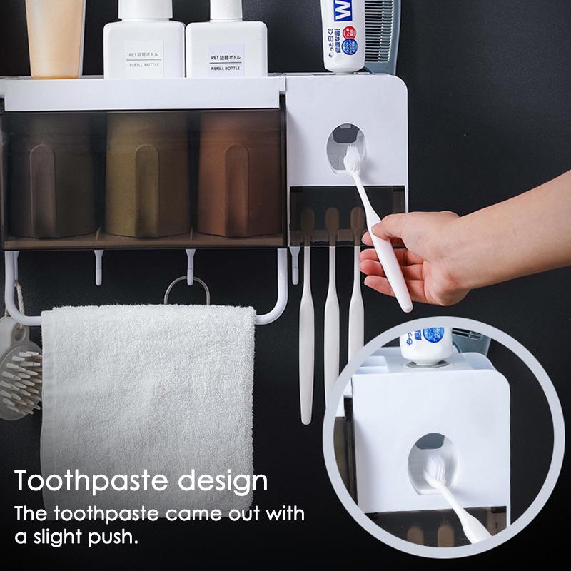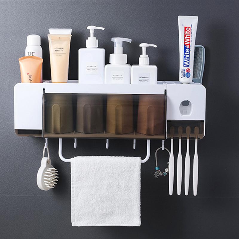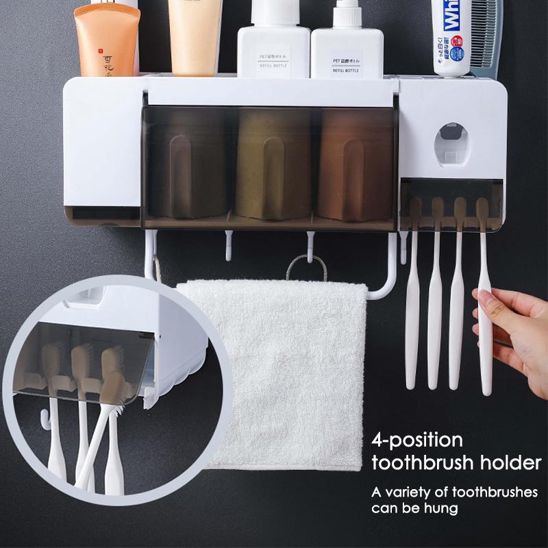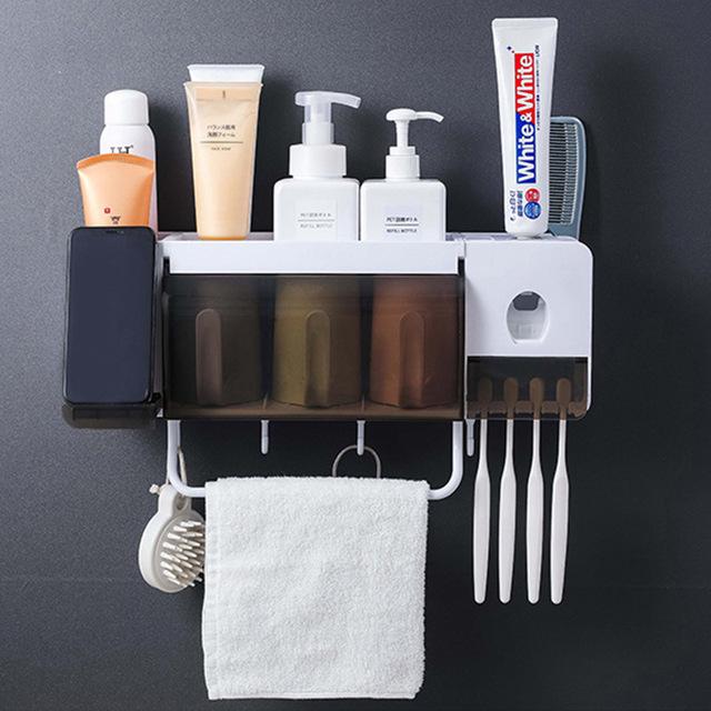 Держатель для зубных щеток, дозатор зубной пасты, стерилизатор, стеллаж для хранения в ванной, органайзер, набор аксессуаров для ванной комнаты, держатель для полотенец с чашкой