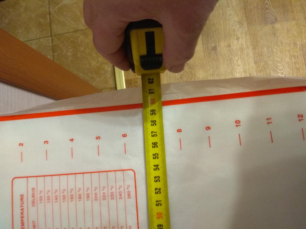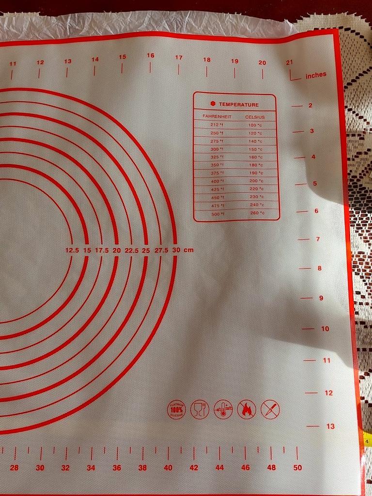 Силиконовый коврик для разделки теста и выпечки отличного качества. Размер соответствует заявленному: 40×60 см. Упакован был коврик, свёрнутый в рулон и перегнутый пополам в чёрный пакет. Но заломов никаких нет. Изначально завёрнут в бумагу. У меня уже есть коврик меньшего размера, который я использую на противне для выпечки. Заказала больший на стол для раскатки теста. Не скользит, легко моется. Продавца рекомендую! Спасибо, Joom!