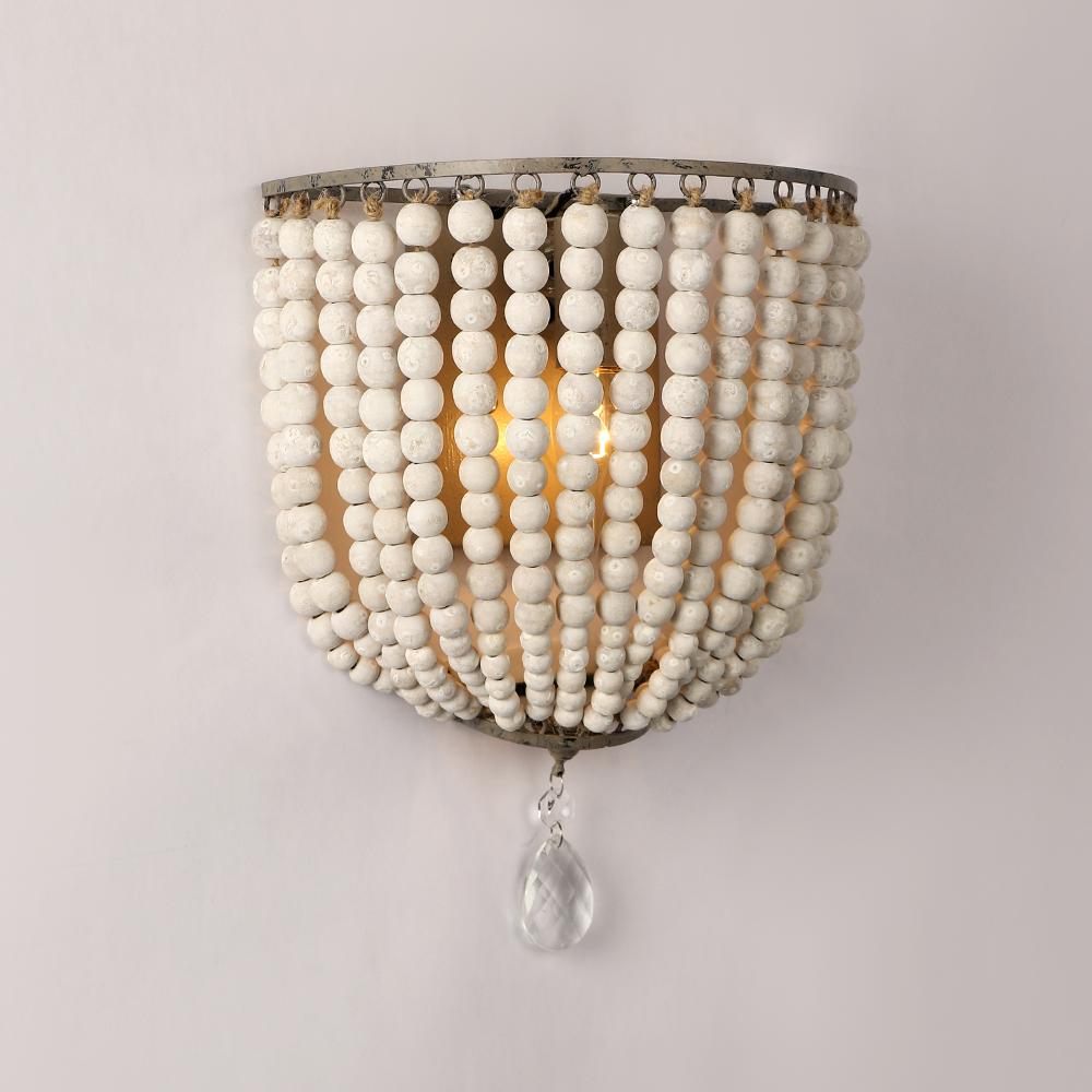 Настенный светильник в европейском ретро-стиле с бусинами и деревянными акцентами для спальни и кафе