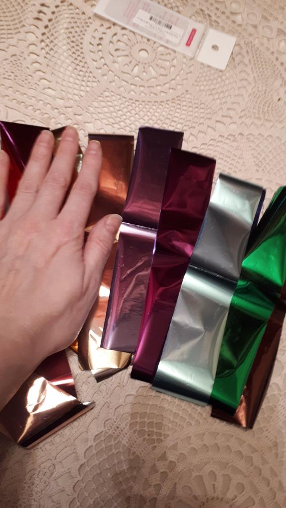 Доставка до Красноярска почти 3 месяца. Сборная посылка. Купила за 119 р. Комплект фольги 14 цветов. Длина полоски 20 см. Оч нь легко переносится, хорошо во время клей для неё пришёл. Я не стала сильно все разворачивать, очень сложно опя ть сложить в упаковку. Купила для себя любимой, но кто занимается маникюром отличный товар. К покупке рекамендую С уважением Лариса