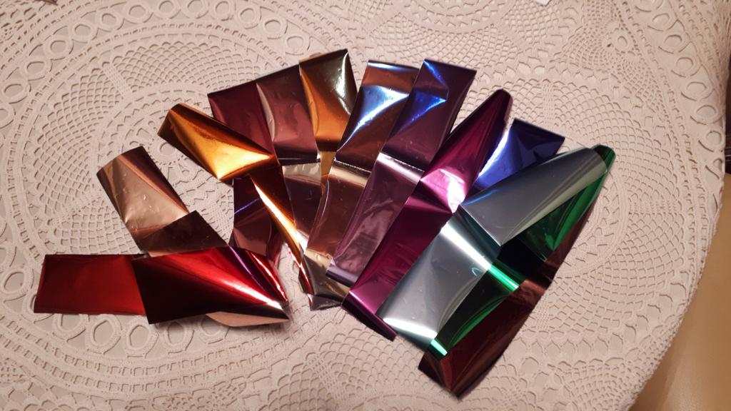 Набор цветной фольги для декора ногтей. В комплекте 14 полосок Размер 20*4см Все цвета яркие, насыщенные, отлично отпечатываются на ногтиках. Великолепное украшение, а дальше.. насколько хватит вашей фантазии. Покупкой очень довольна. Доставка в сборной посылке, в течении месяца, упаковка хорошая, продавцу спасибо за красивый товар.