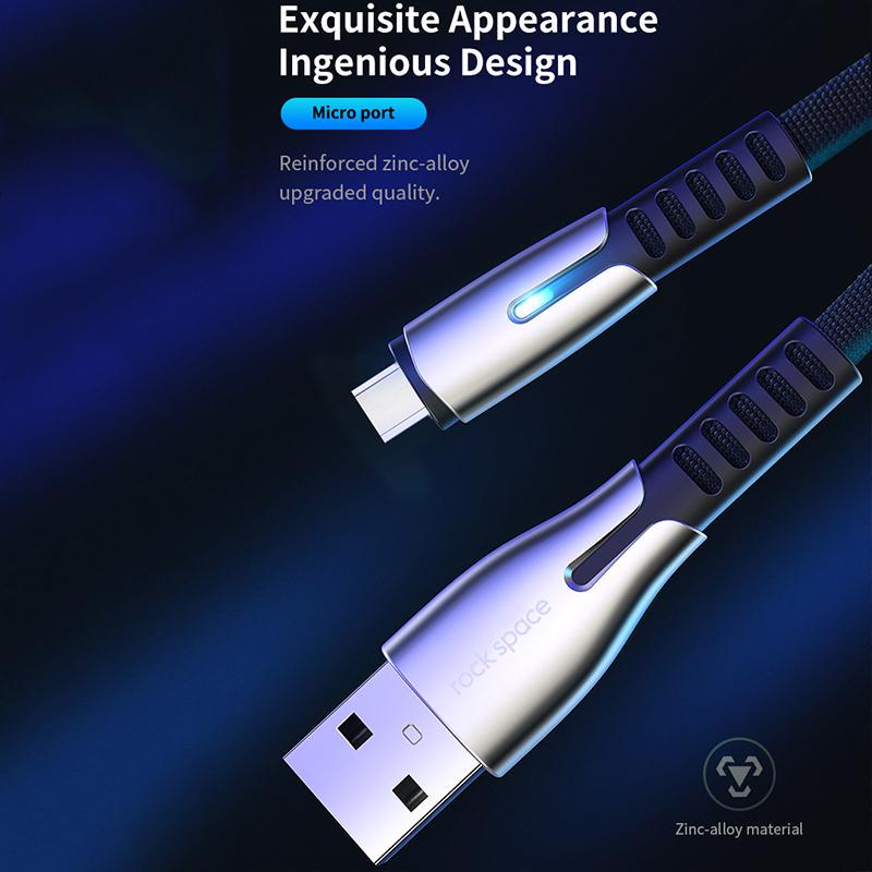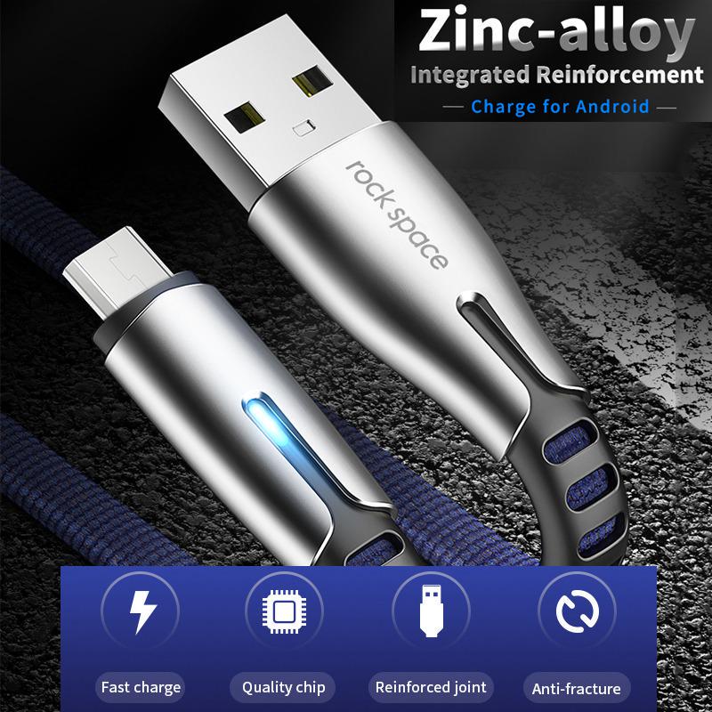 ROCK Кабель Micro USB 2,4 А Зарядные кабели USB типа C из цинкового сплава Провод для быстрой зарядки и синхронизации данных