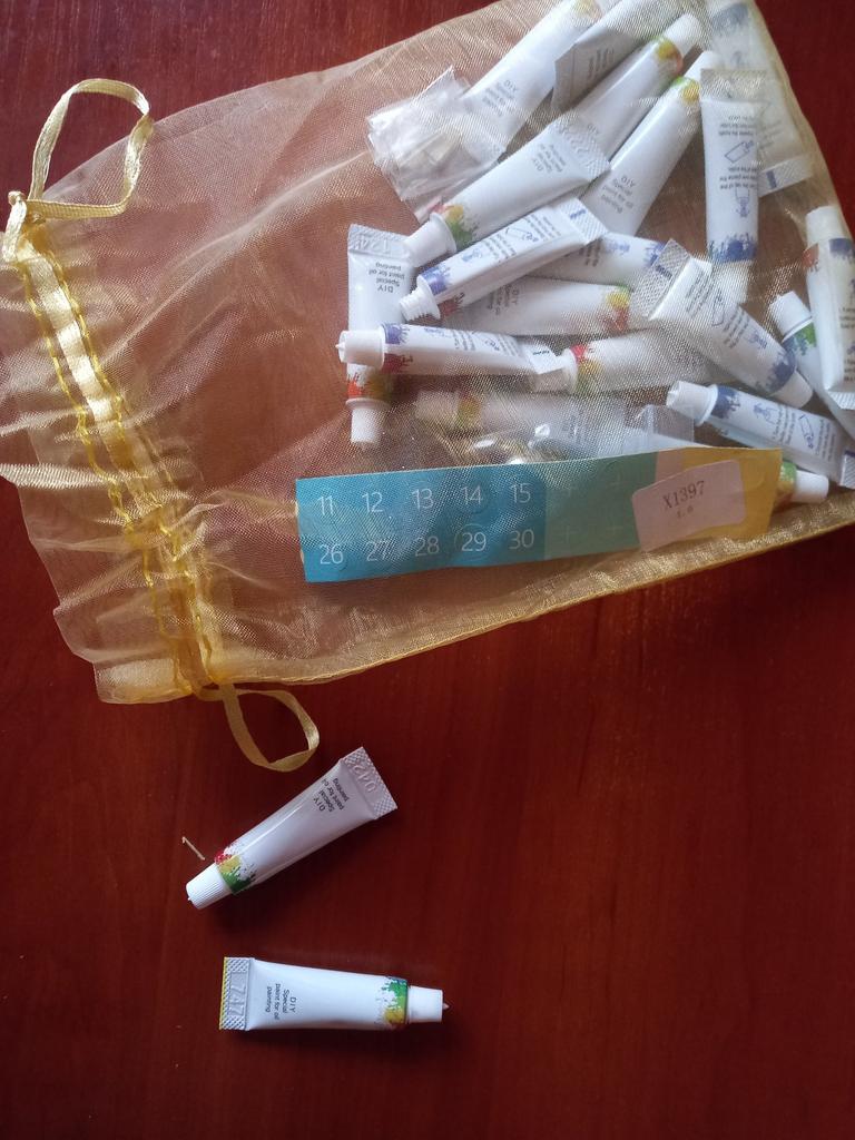 Пришло в коробке как положенно, но нет кисточек и краски в тюбиках. Как искать цвета ума не приложу. В общем ужасно не удобно за такие деньги можно было и лучше сделать. Один тюбик вообще без крышки( картинки тоже нет(