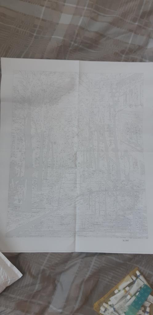 В комплекте: краски, кисти, схема, шурупчики и петелька для готовой картины, холст. Жаль, что холст был сложен в 4 раза, теперь надо выпрямить перед работой