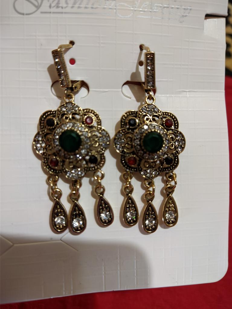 ВСЕМ ПРИВЕТ МОИ ДОРОГИЕ ДРУЗЬЯ!!! ЕЩЁ ОДИН ШИКАРНЫЙ НАБОР СЕРЬГИ И ПОДВЕСКА ВЫПОЛНЕНО В ВИНТАЖНОМ СТИЛЕ. ДОЛГО НЕ МОГЛА ВЫБРАТЬ КАКОЙ ЦВЕТ ЗАКАЗАТЬ. У продавца в наличии зелёный, красный и черный наборы. Выбрала зелёный. Смотрится очень хорошо, дорого . Не вызывающе, всё в меру в этом наборе. На серьгах английский замок. Держатся хорошо, застёгивается с щелчком. Не особо тяжёлые, но вес чувствуется. Не соответствует длина цепочки всего 20 САНТИМЕТРОВ. Очень короткая. Длина серёжек 5 сантиметров. Кулон длина 5 сантиметров, ширина 3 сантиметра. Упаковка была отличная. Повредится у набора не было шансов. Товар и продавца рекомендую.