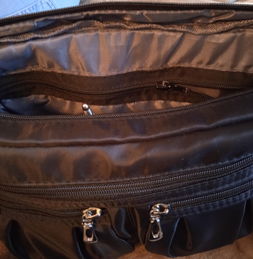 СУМКУ заказываю уже третий раз - удобная, лёгкая, компактная, но наложить можно много всего - много нужных карманчиков) В этот раз пришла чёрного цвета. Визуально такая же, как и прежние, но ткань самой сумки и ремень через плечо заметно тоньше(( В пустом виде веса практически не имеет. Без постороннего запаха, прошито всё как надо, замки работают. Из минусов - у двух предыдущих сумок очень быстро рвалась внутренняя подкладка по верхнему шву. Но, скорее всего, из-за перегруза - сумка очень вместительная) Можно бы подкладку делать посвободнее, не в натяжку. А так, сумка отличная и руки всегда свободны - очень удобно))