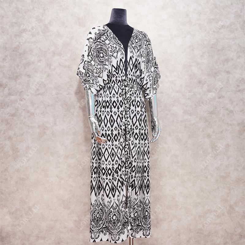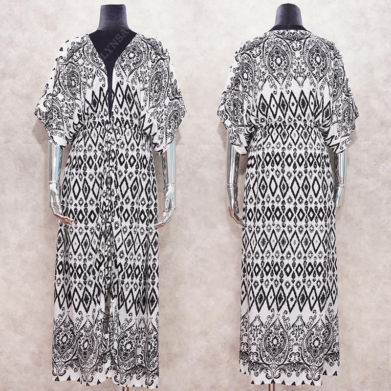 Повседневные накидки на бикини, синяя туника с принтом в стиле бохо, летняя пляжная одежда больших размеров, купальный костюм, накидка