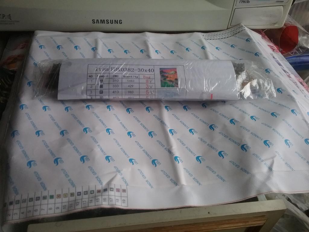 Заказ пришел во время,2 заказа положили в один пакет,удобно.Стразы внутри вышивки завернуты,а так как их много,вышивки смялась немного.