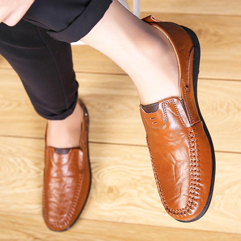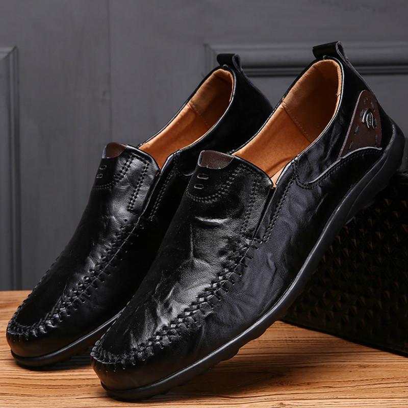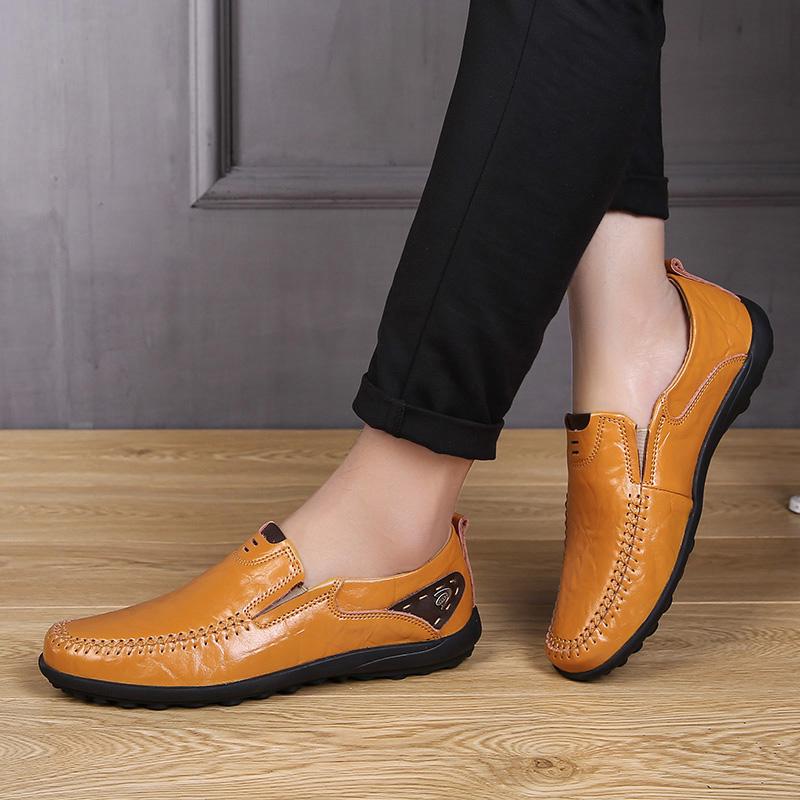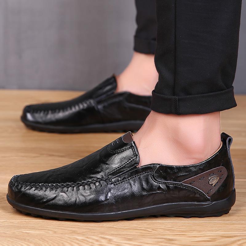 Мужская кожаная обувь Мокасины ручной работы Мужские удобные кожаные туфли на плоской подошве Мягкие кожаные лоферы 38-47