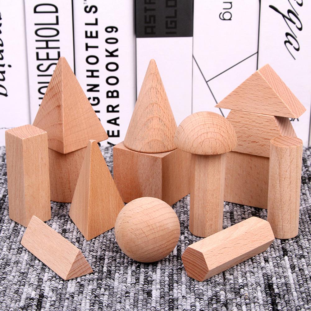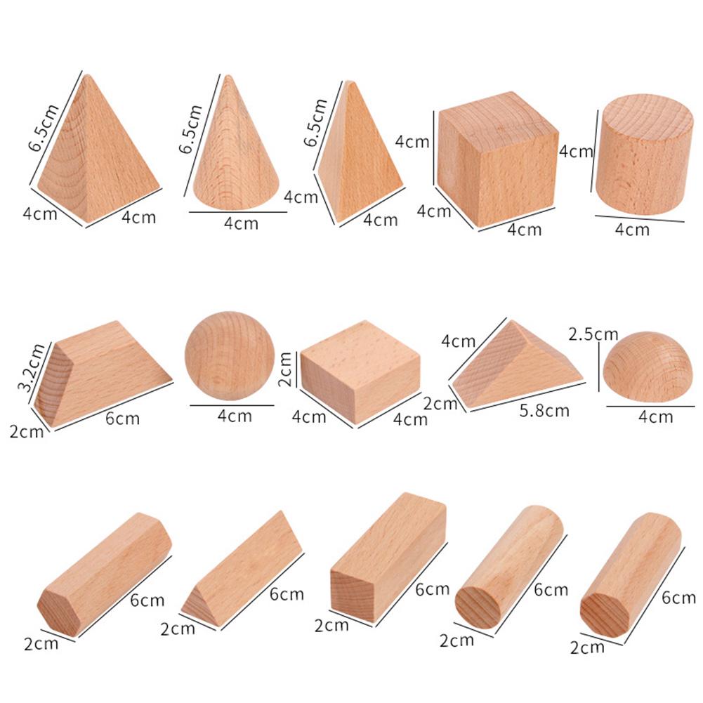 15 шт. геометрические блоки, детская 3D-математическая деревянная твердая игрушка, образовательная