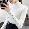 2020 женский осенний вязаный свитер, однотонный вязаный женский хлопковый мягкий эластичный цветной пуловер на пуговицах, водолазка с длинными рукавами