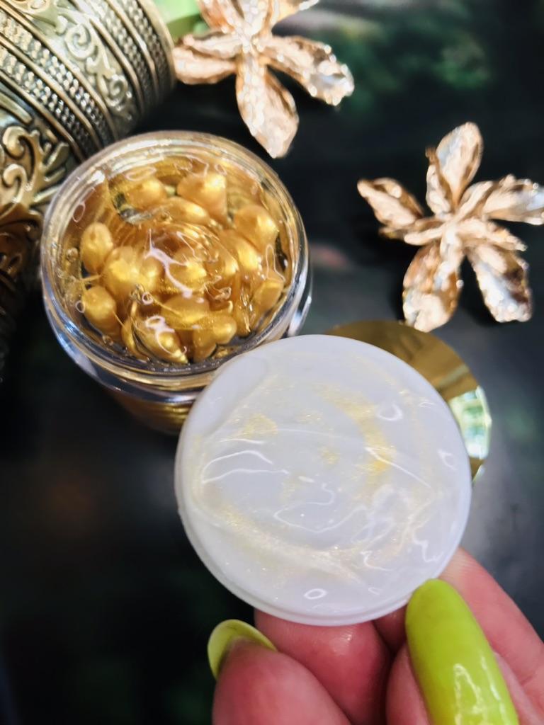 SENANA - 24K чистого золота, это настоящая РОСКОШЬ КРАСОТЫ !!! Просто невообразимо красивое содержимое в капсулах с золотым переливом. Очень не обычный, золотой дизайн ! Прозрачная баночка с золотой крышкой, а внутри будто слияние солнечных частиц космического мерцания и воздушной стихии....красивое скручивание двух течений .. ... Я долго любовалась этой красотой, ну правда, очень необычный уходовый продукт. Весь дизайн продуманный Брендом вызывает чувство - что ты держишь в руках, и будешь пользоваться очень дорогим средством !!! Крем - гель густой. В индивидуальном пакетике есть ложечка для смешивания и нанесения на кожу. Баночка и крышка из пластика, под золотой крышкой мембрана. Текстура крем - Геля просто невероятно красивая, нежная. Капсулки с золотом перемешиваются с легкой гелевый текстурой, окрашивая ее в золото. Аромат мне знаком, так пахнет женский ( дорогой ) парфюм, приятно, но название не вспомнила. 💫 Капсулы наполнены чистым коллоидным золотом и придают естественную энергию. 💫 Экстракт улиточной слизи. 💫 24 -Каратное золото поддерживает гидробаланс в течении длительного времени. Усиливает микроциркуляцию крови и приток к клеткам,вырабатывая собственный коллаген и эластин. Кожа обновляется, омолаживается, упругость, эластичность. 💫 Аденозин - Сертифицирован Корейским управлением KFDA. Лифтинговое действие. 💫 Утро / Вечер. 💫 Возрастных ограничений нет. 💫 Вес : 60 гр. 💫 Заводское изготовление. Коробочка затянута в слюду. 💫 Срок годности : до 2024.93.08. Знак экологического качества. Но я купила его - для век, лица, шеи и декольте. Наношу в вечернее время, после снятия макияжа. Вы наверно подумаете что я выбрала из - за красивого дизайна ? Нет 😊 ! Очень давно я видела как таким кремом пользовалась родная сестра , моего первого супруга , она моталась за границу ( челноком ), и привозила его от туда ( а выглядела она очень хорошо 👌 , я ее просила привезти и мне , но по каким-то своим соображением находила всегда отговорки.. Листая крема , я его увидела и сразу купила ! На декольте крем смотрится .. короче Шиммер нервно "курит в сторонке", липкости нет, так и пойду на работу 👌. Очень рекомендую к покупке 🛍🛍🛍 Ваша Svetlana 🌺