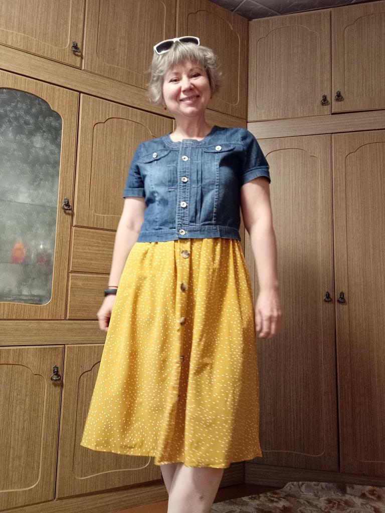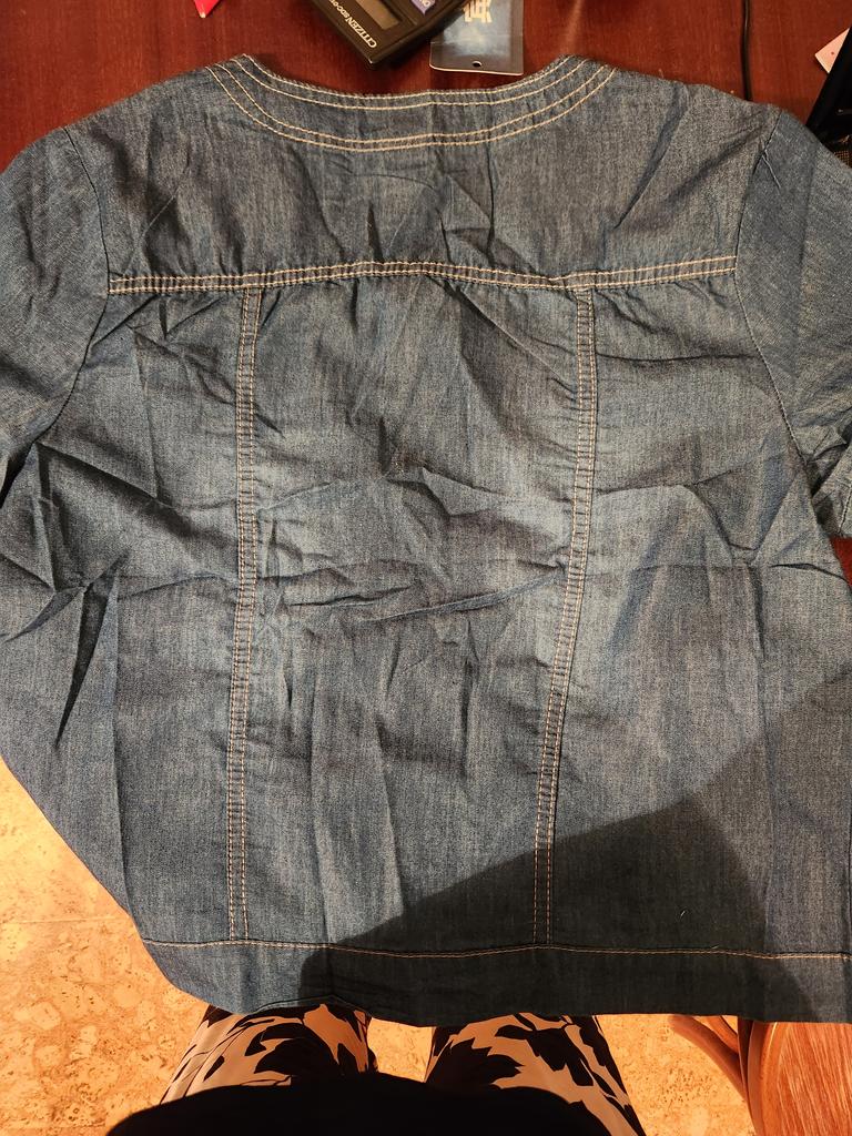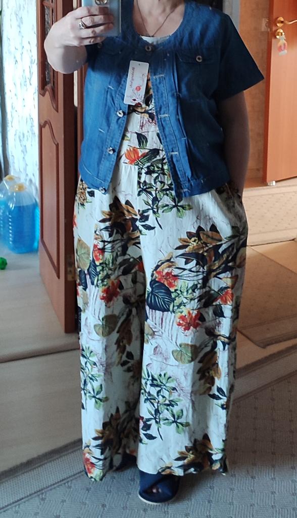 ЛЕТНЯЯ УКОРОЧЕННАЯ КУРТКА С КОРОТКИМИ РУКАВАМИ Люблю сарафаны, иногда хочется плечи спрятать..... спасает мини куртка... Модель приталенного кроя, спереди два накладных клапанов, карманов нет, ворот под горловину с планкой пуговицами с заклёпками Материал: тонкий, мягкий, не тянется, не "джинсА", смесовой состав ткани, больше хлопка по тактильным ощущениям Пошив фабричный хороший На мои параметры 93/80 я взяла размер максимальный XXXL .... подошёл, застегнула полностью , не впритык.... единственное, рукава рассчитаны на худые руки, у меня окружность рук в области бицепса 35 см, кабы мне впритык.... При росте 162 см длина куртки до пупка Реальные измерения без натяжения: Длина изделия 45 см Длина рукава 20 см ОГ 100 см Итог : товар меня порадовал и качеством, и пошивом, в меру " затертости", и фасоном Любителям однозначно рекомендую, с учётом на худые руки